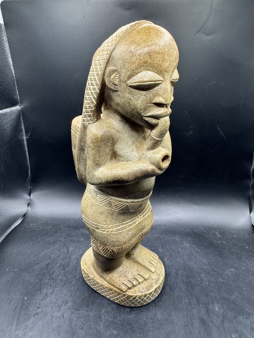 Jolie, imposante et unique Sculpture Africaine « L’homme à la pipe » – Pierre dure de Mbigou – Gabon