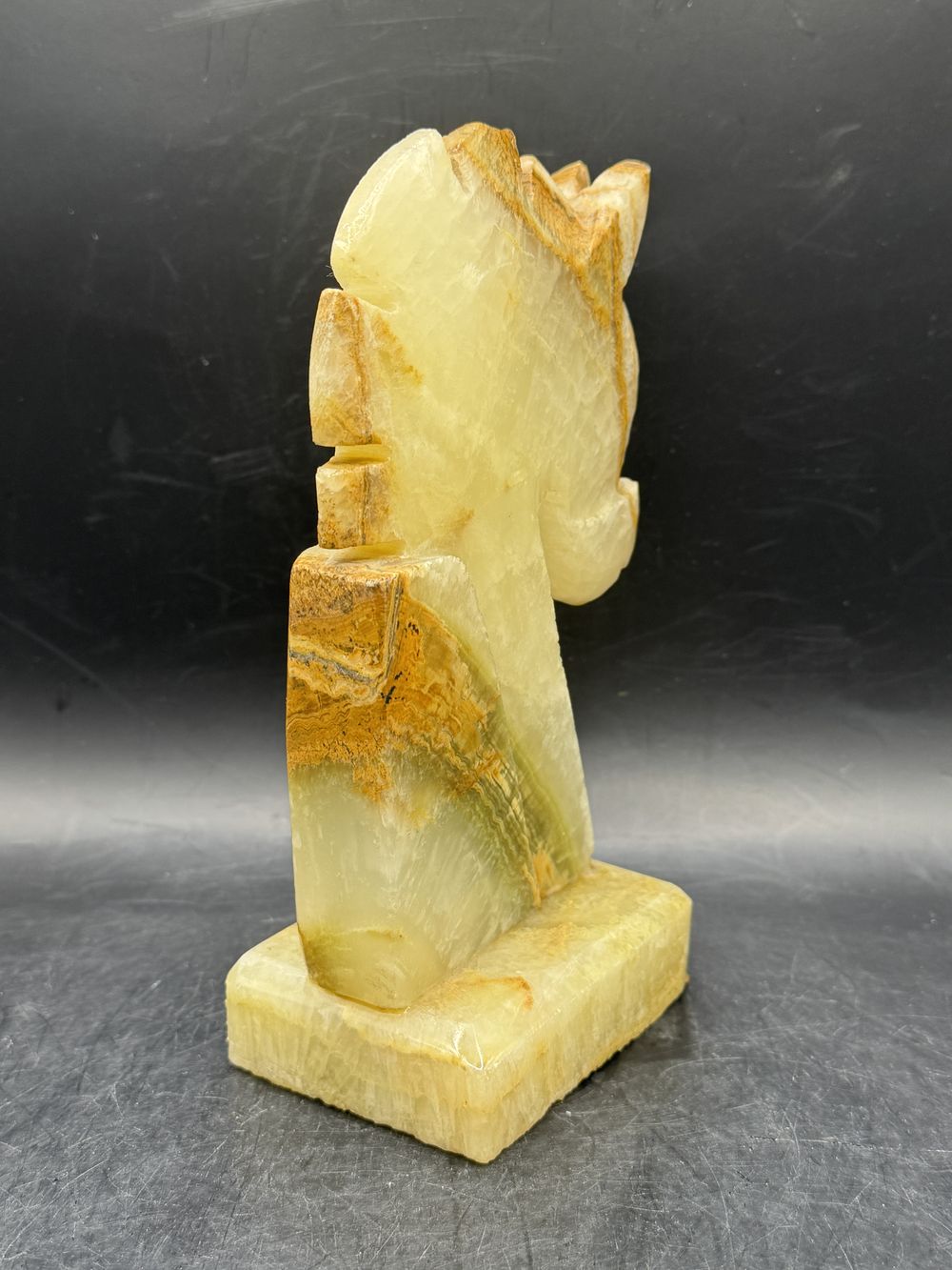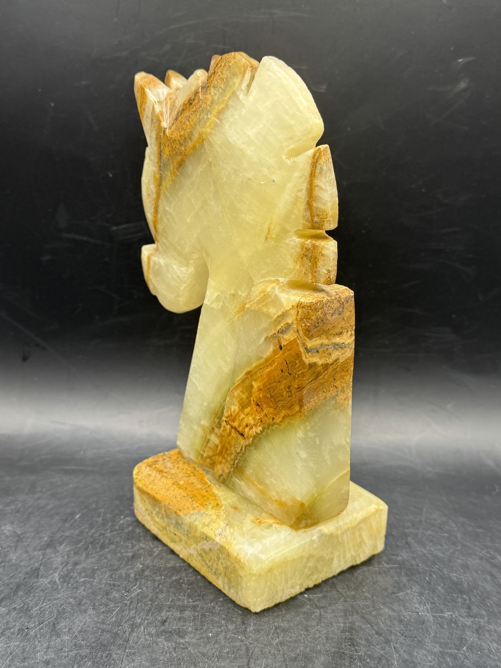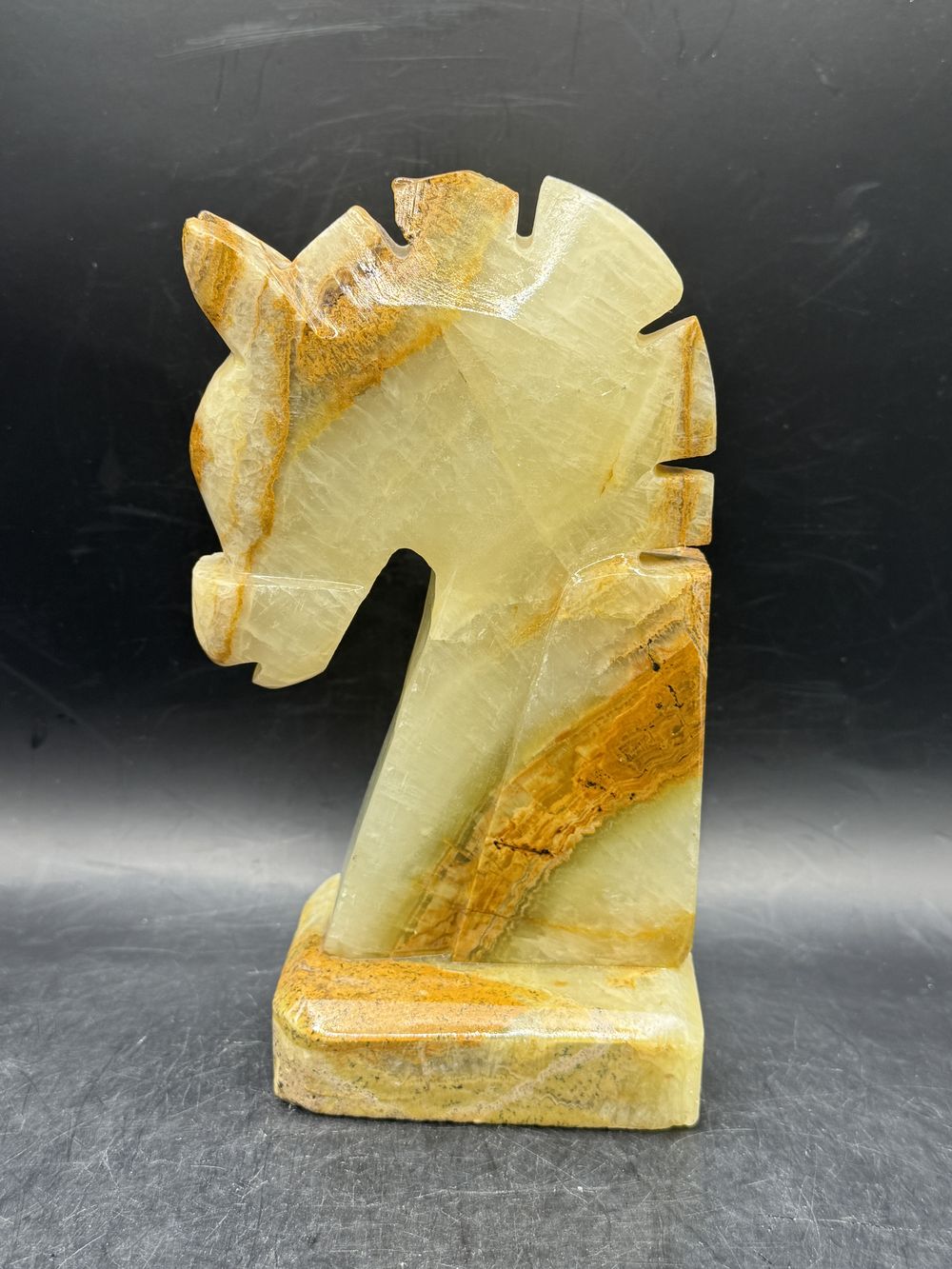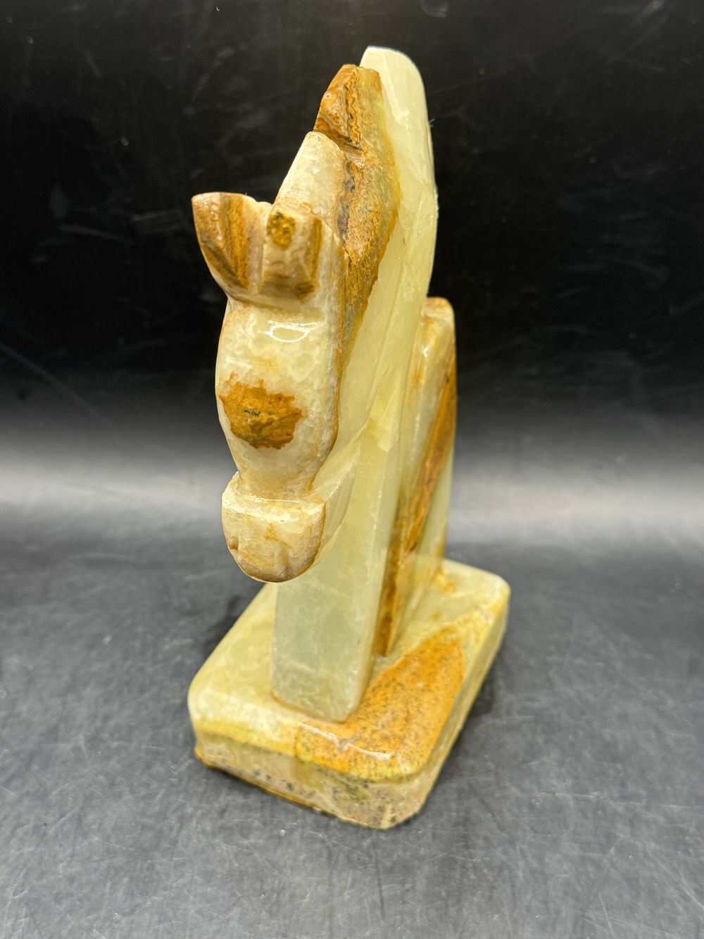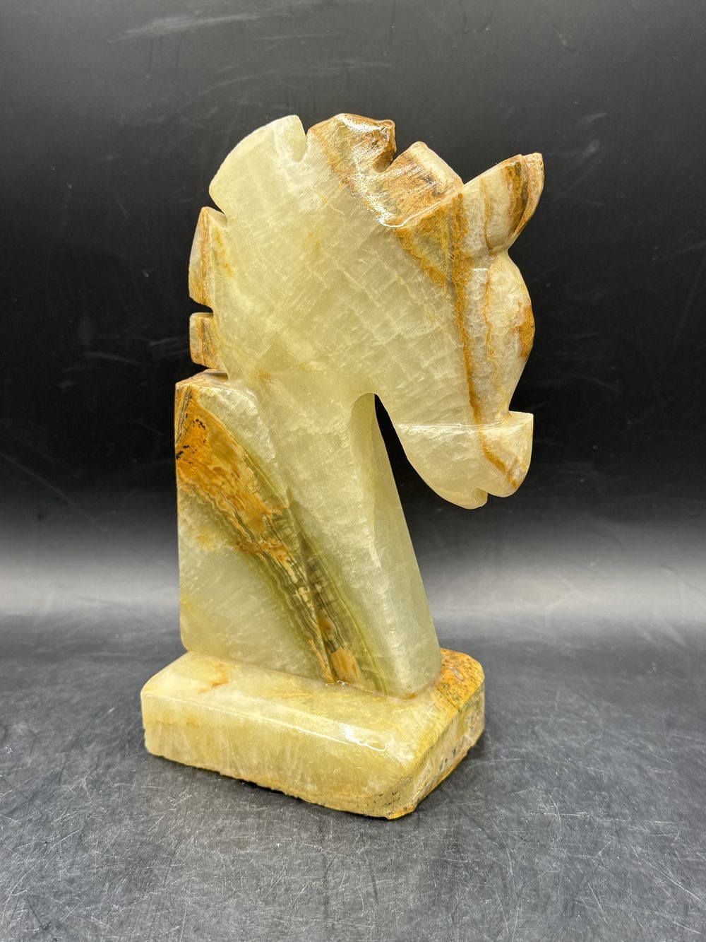 Jolie Sculpture/statuette en pierre/Presse papier – Tête de cheval en Onyx – Pièce du jeu d’échec