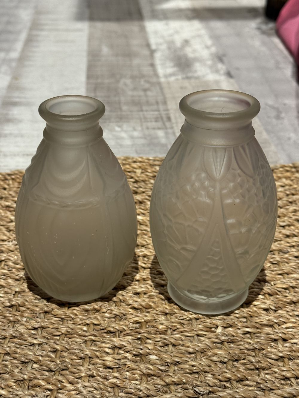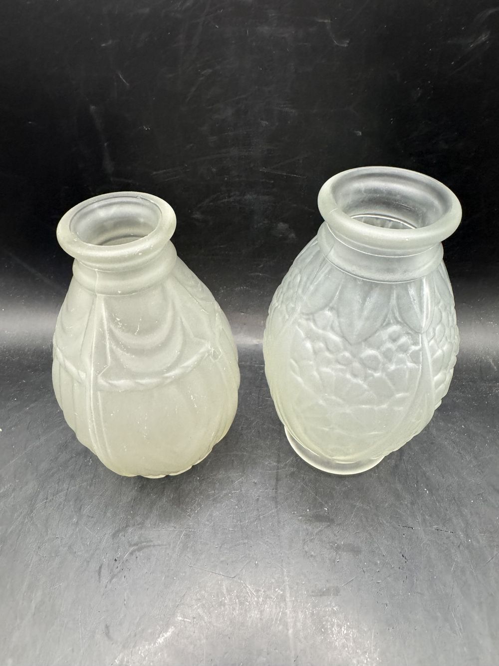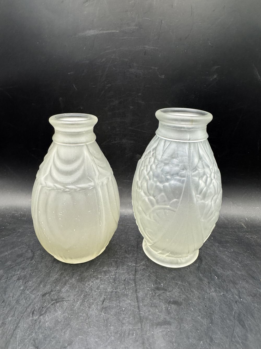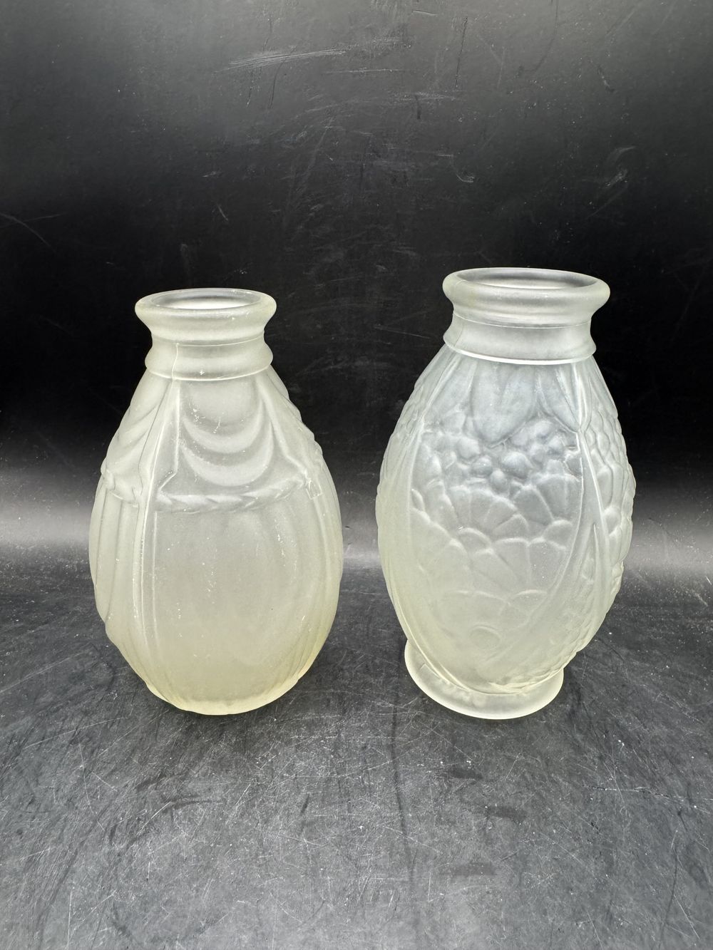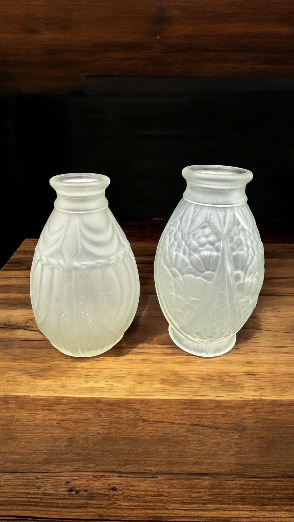Lot de 2 anciens et authentiques petits vases Français – Travail en pâte de verre (verre givré) signés Joma (Montreuil) – Epoque Art Déco 1930 – Collection – Décoration