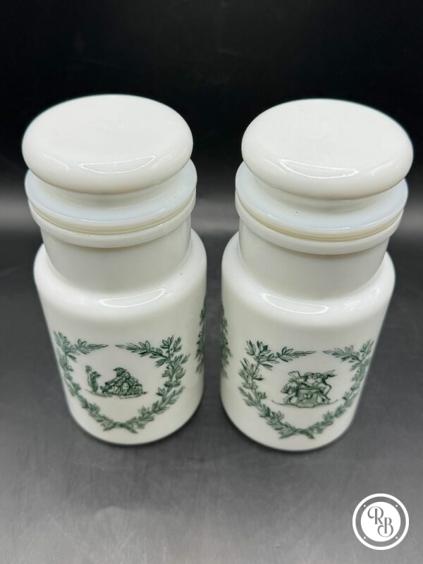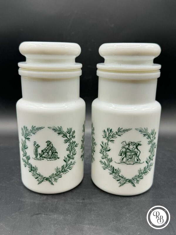 Lot de 2 anciens pots en verre d’opale réalisés en Italie. Ils ferment très bien.