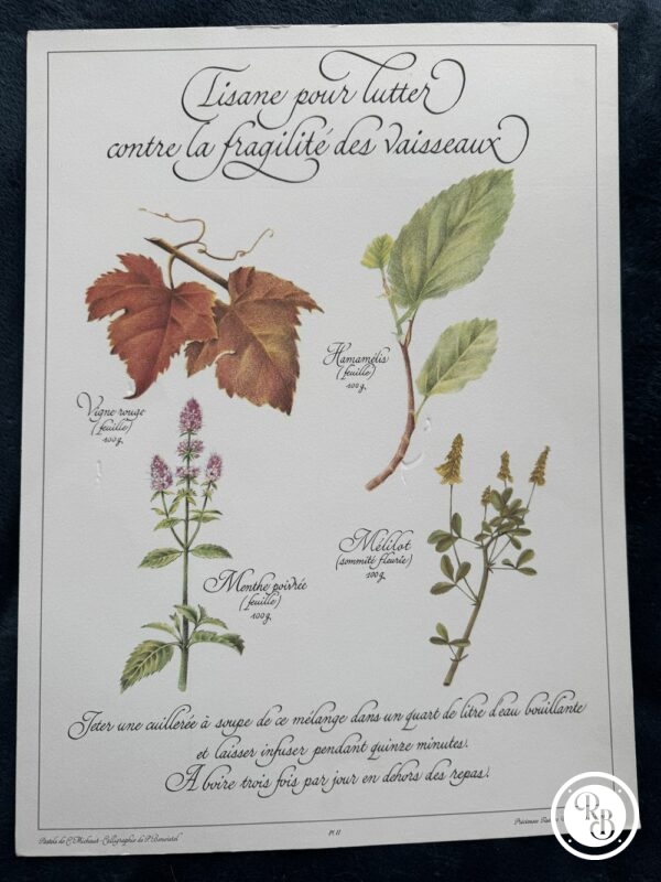 Lot de 9 Affiches/Planches – « Précieuses Tisanes » éditées en 1982 par L. Pariente – Pastels de Michaud et Calligraphie de Benoistel