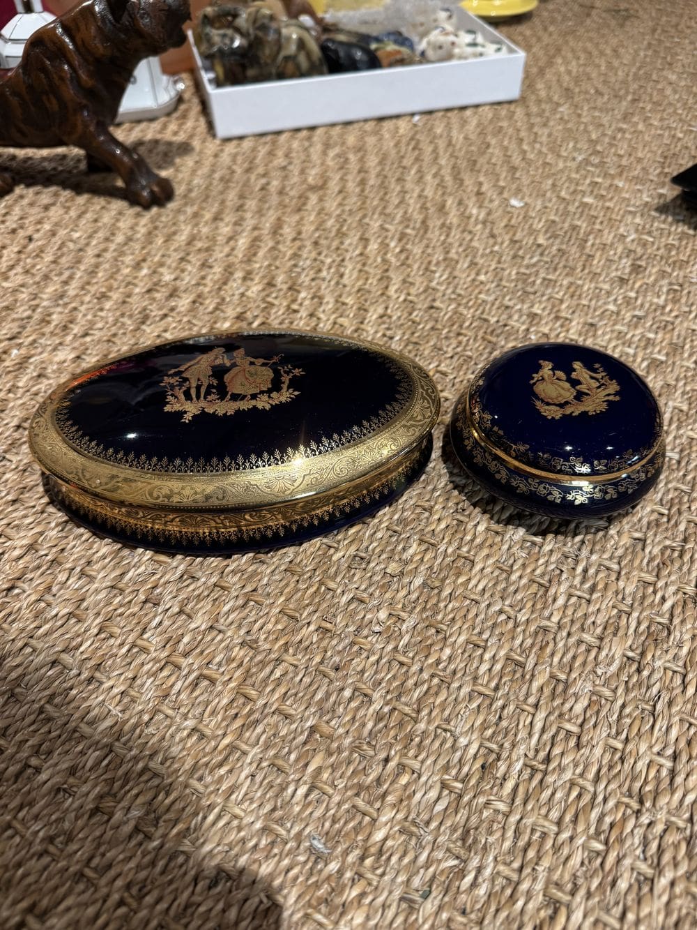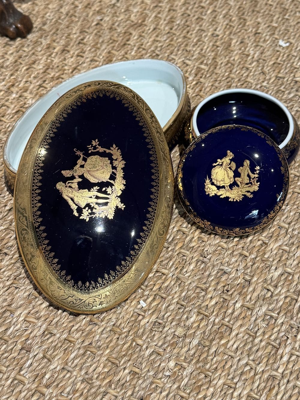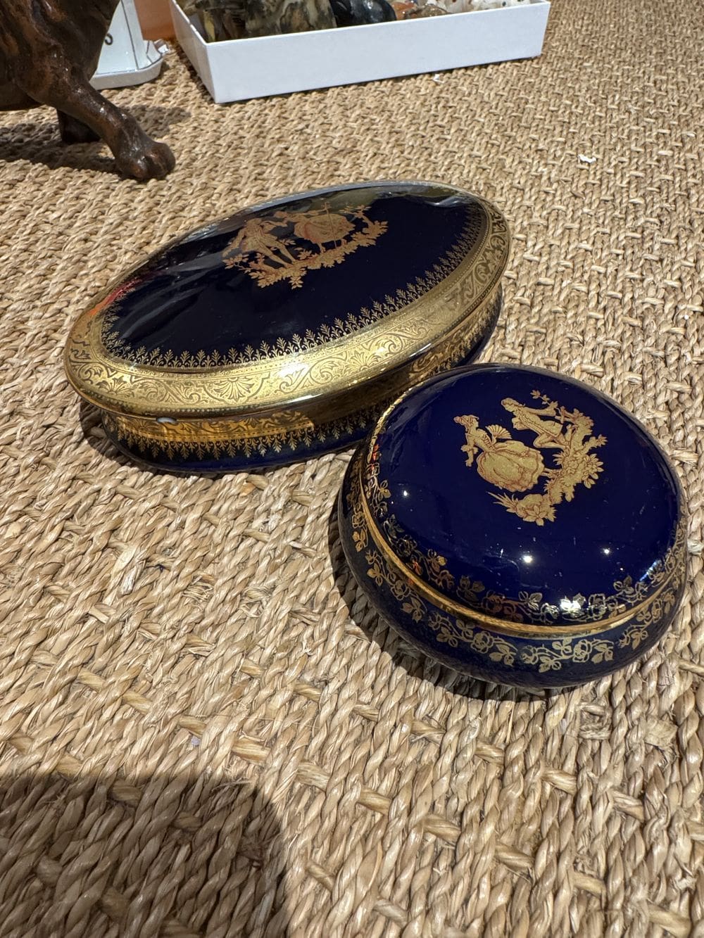 Lot de deux jolies boites à bijoux ou autres – En porcelaine de Limoges – Claude Brachet – Bleu cobalt nuit à décor doré or – Collection – Déco