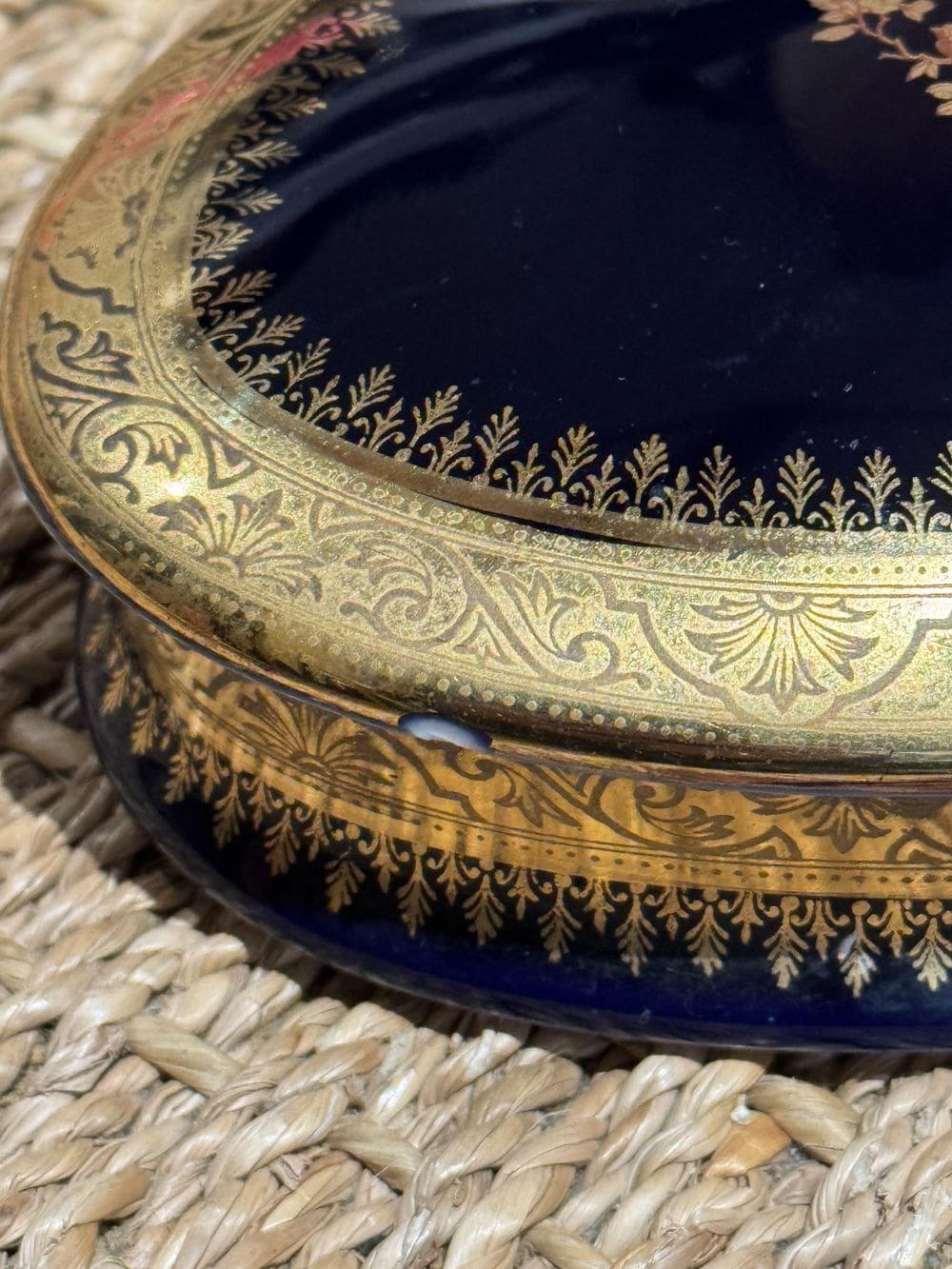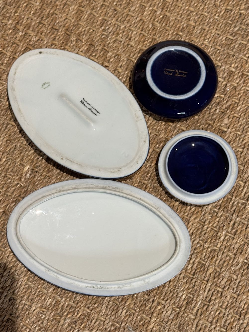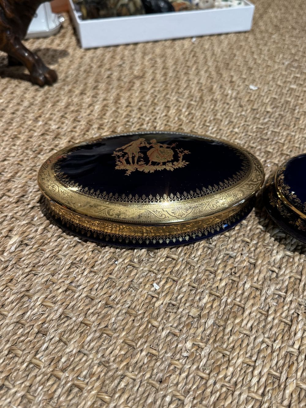 Lot de deux jolies boites à bijoux ou autres – En porcelaine de Limoges – Claude Brachet – Bleu cobalt nuit à décor doré or – Collection – Déco