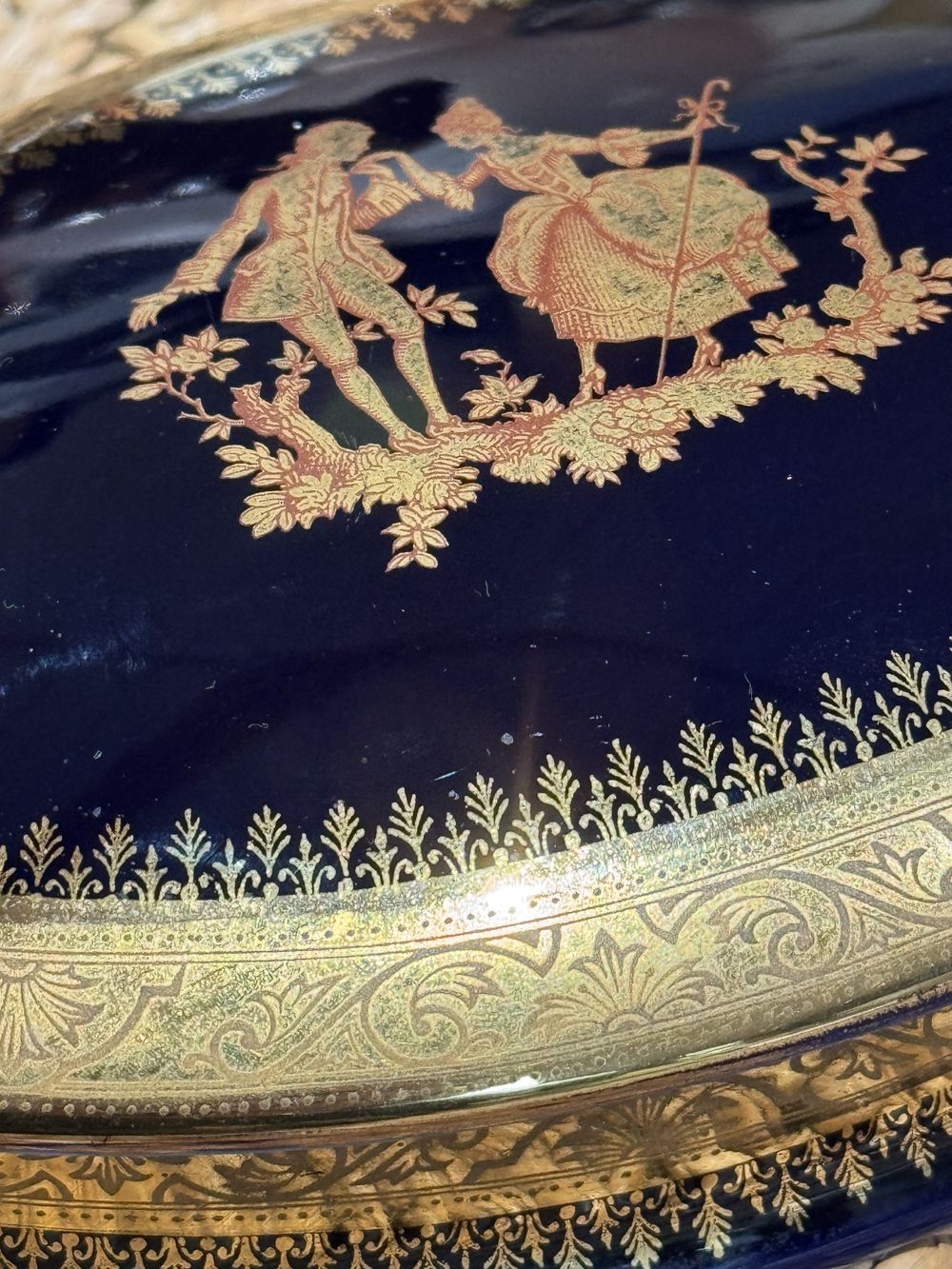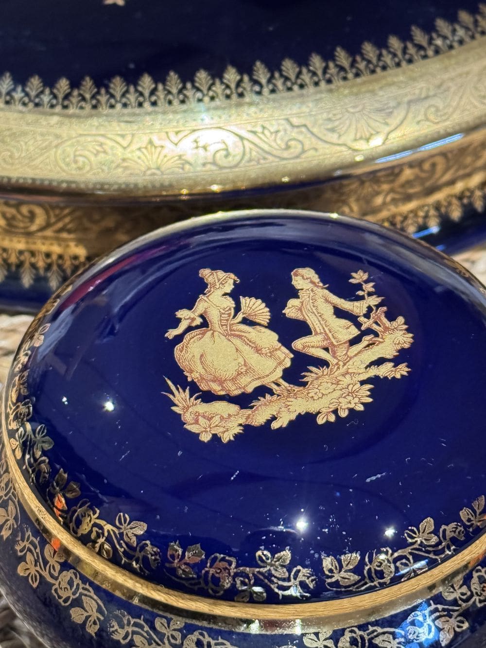 Lot de deux boites à bijoux ou autres – En porcelaine de Limoges – Claude Brachet – Bleu cobalt foncé à décor doré or