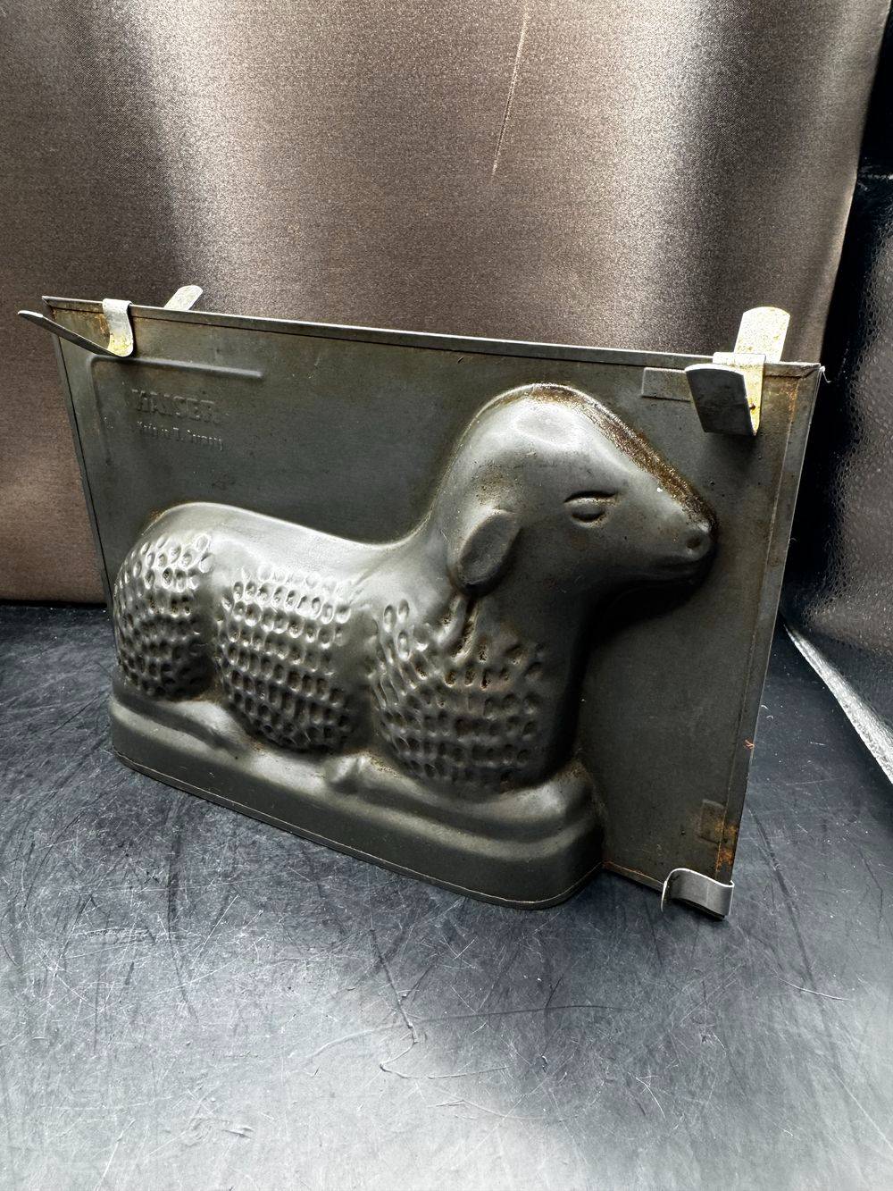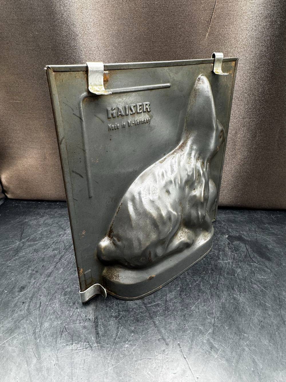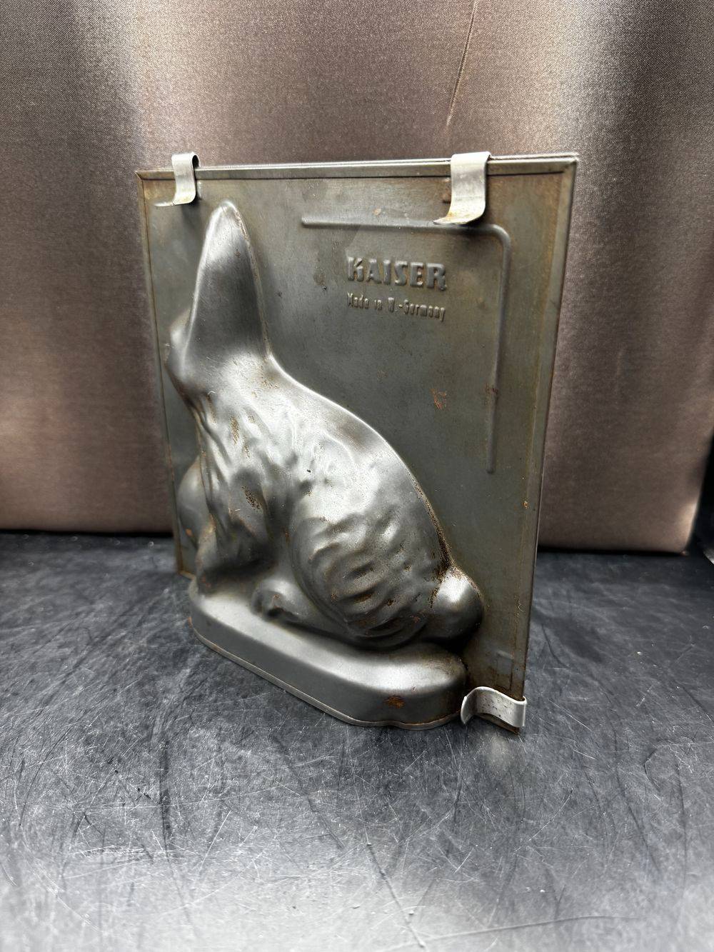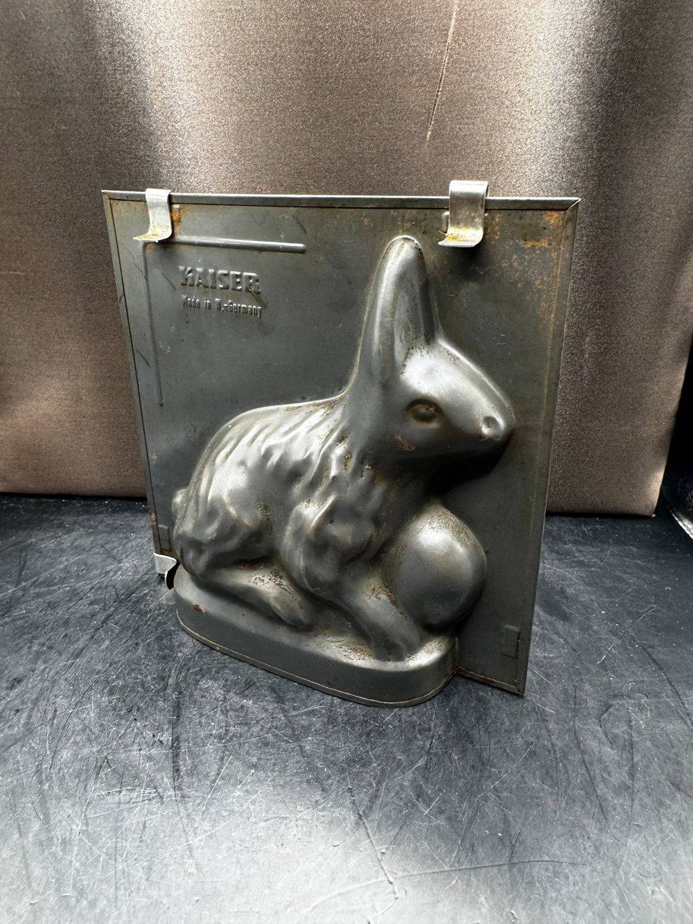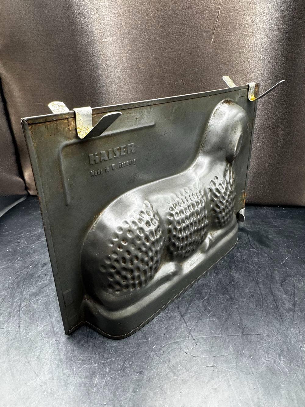 Lot / Duo d’anciens moules à chocolat en métal Mouton et Lapin – Estampillés » Kaiser – Made in Germany » sur les des deux parties