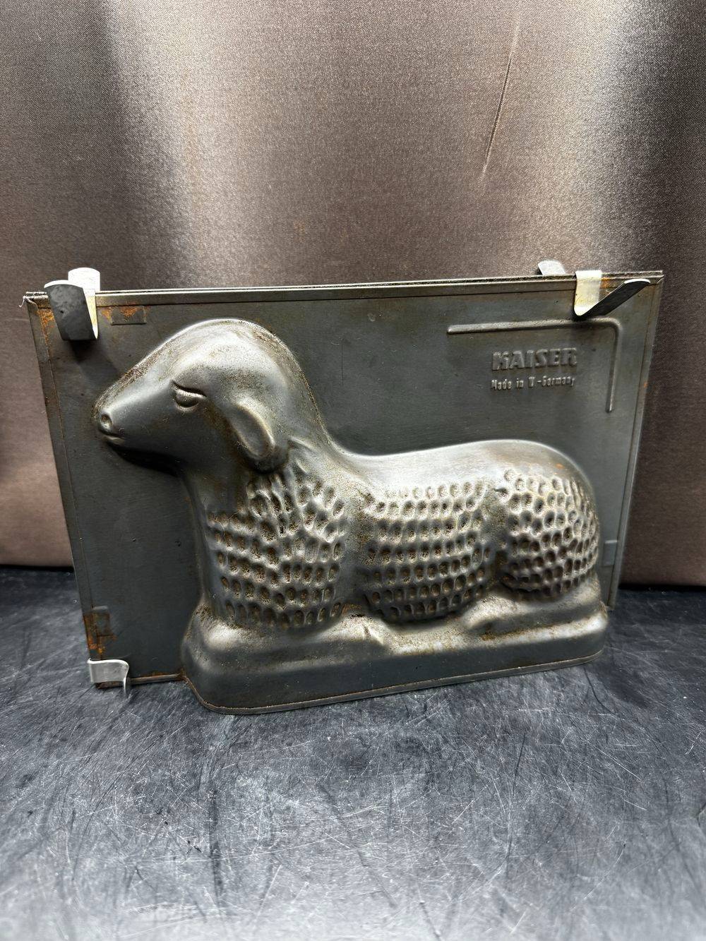 Lot / Duo d’anciens moules à chocolat en métal Mouton et Lapin – Estampillés » Kaiser – Made in Germany » sur les des deux parties – Collection – Déco – Pâques