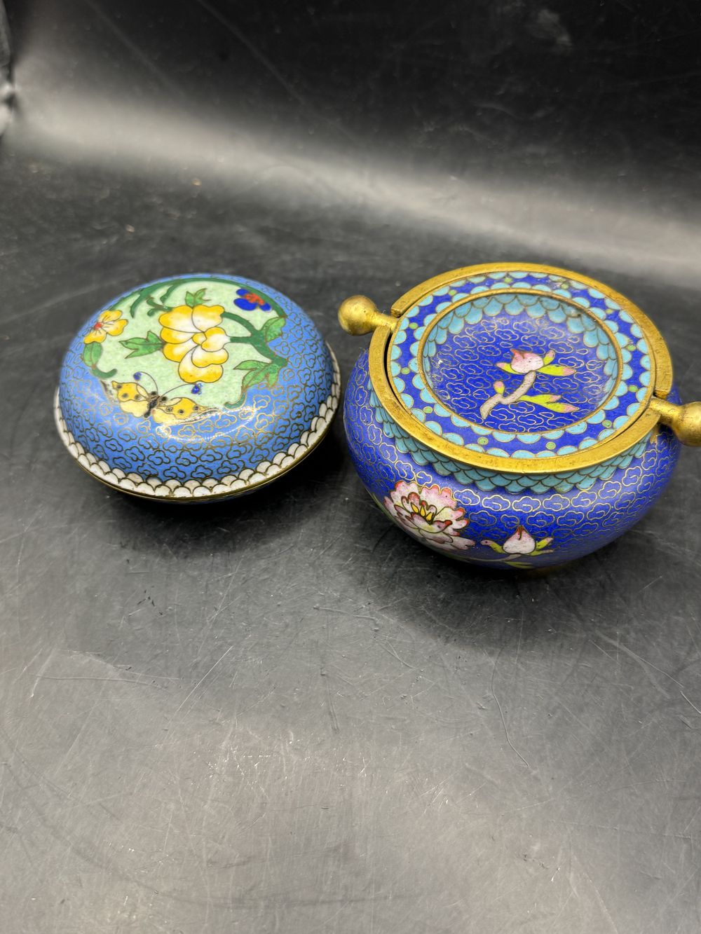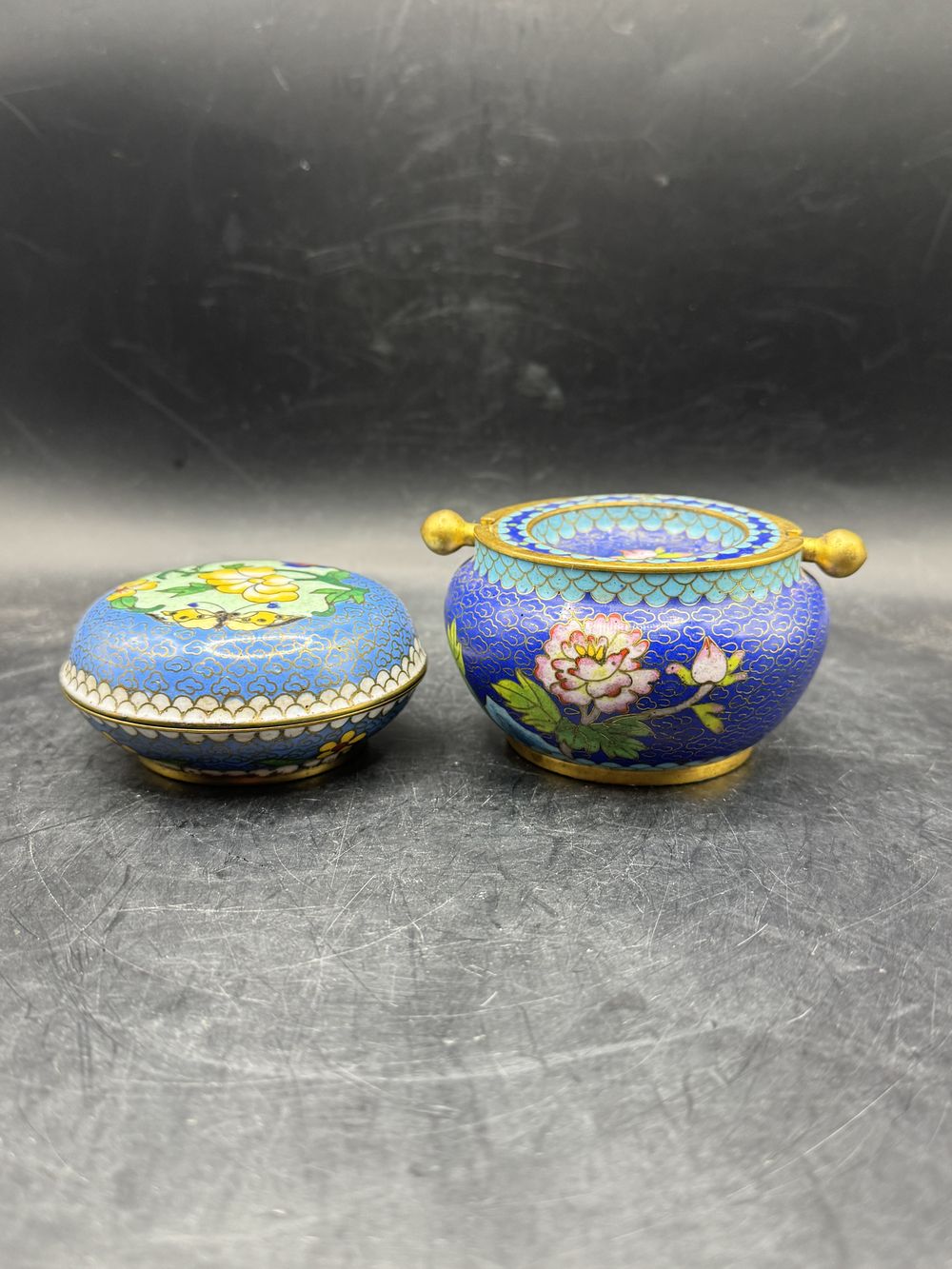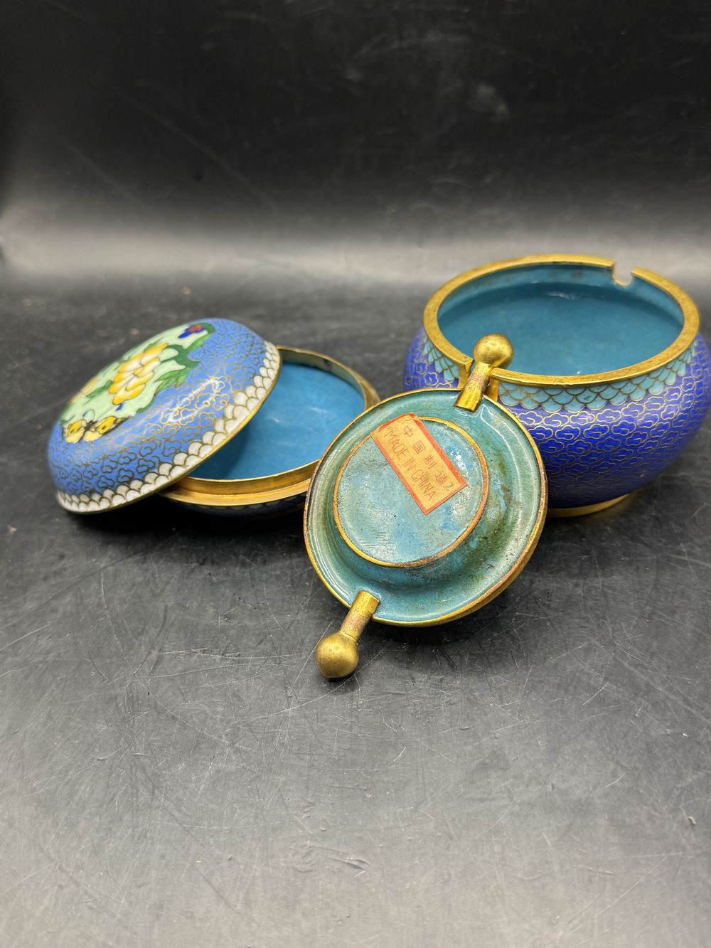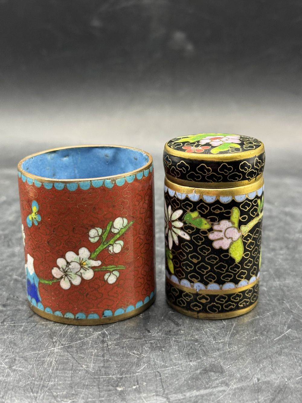 Lot/Ensemble de quatre objets chinois anciens en émail cloisonné – Pièces de vitrines – Cabinet de curiosité – Collection – Décoration