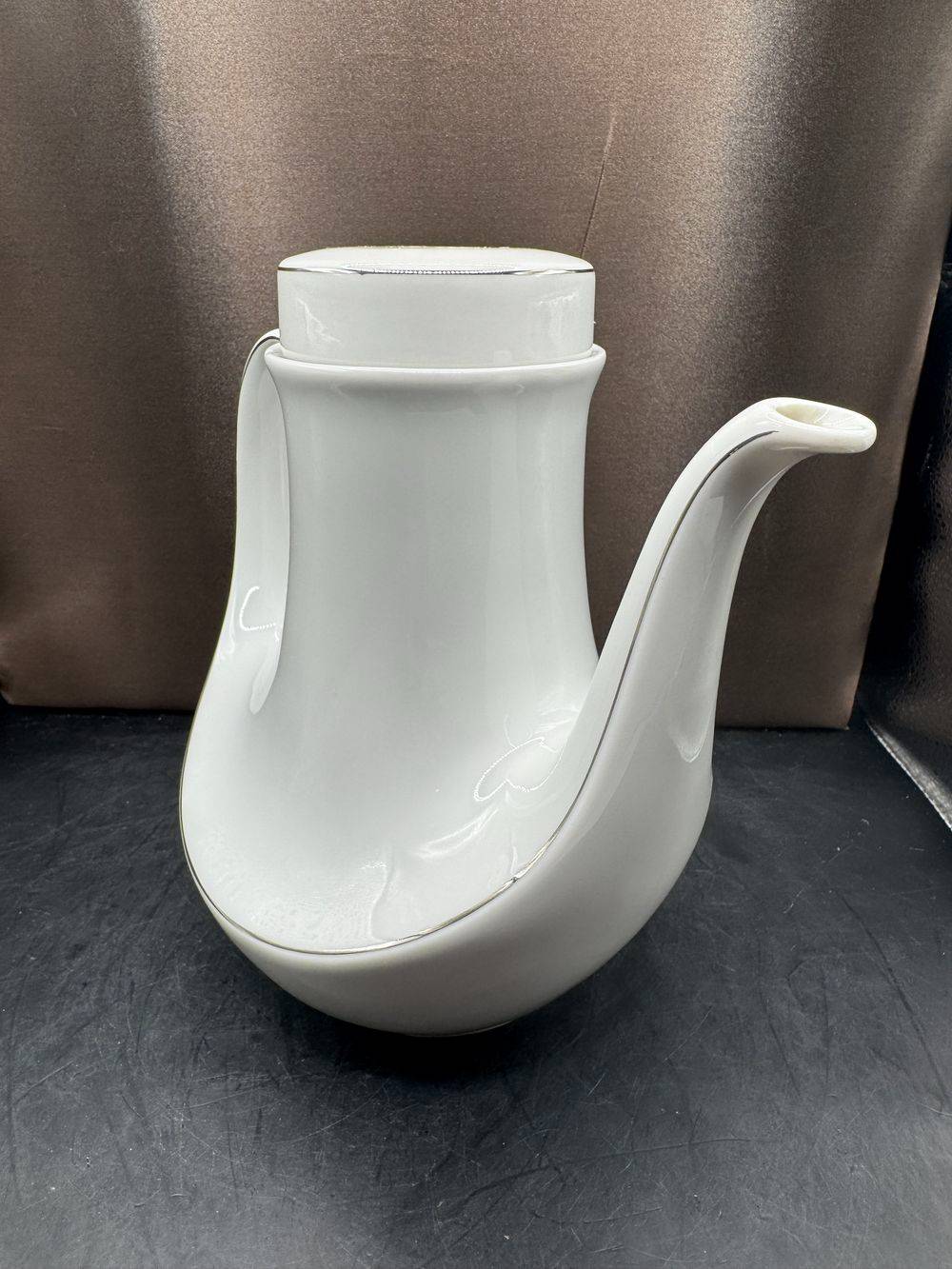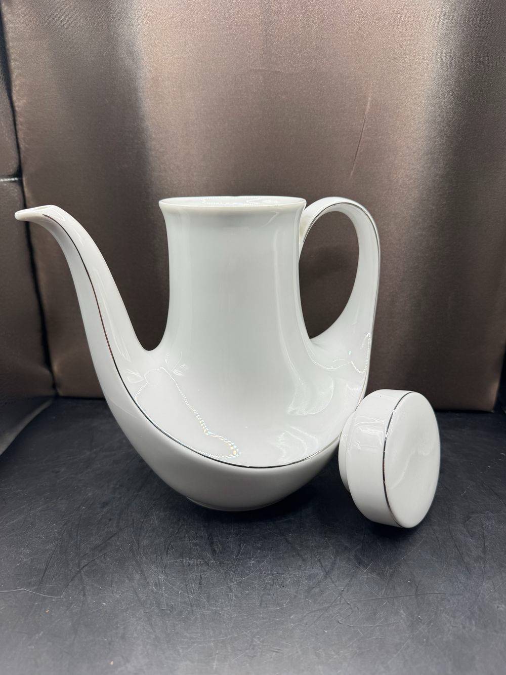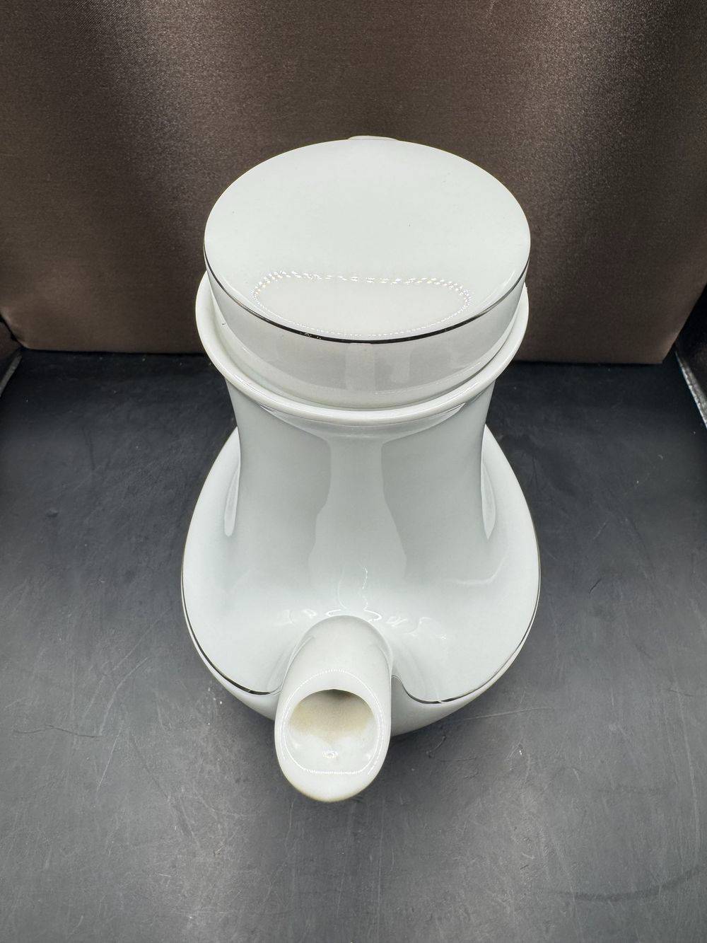 Magnifique et ancienne Cafetière et son bouchon en porcelaine de Bavière Seltmann Weiden – Blanche et liseré argenté