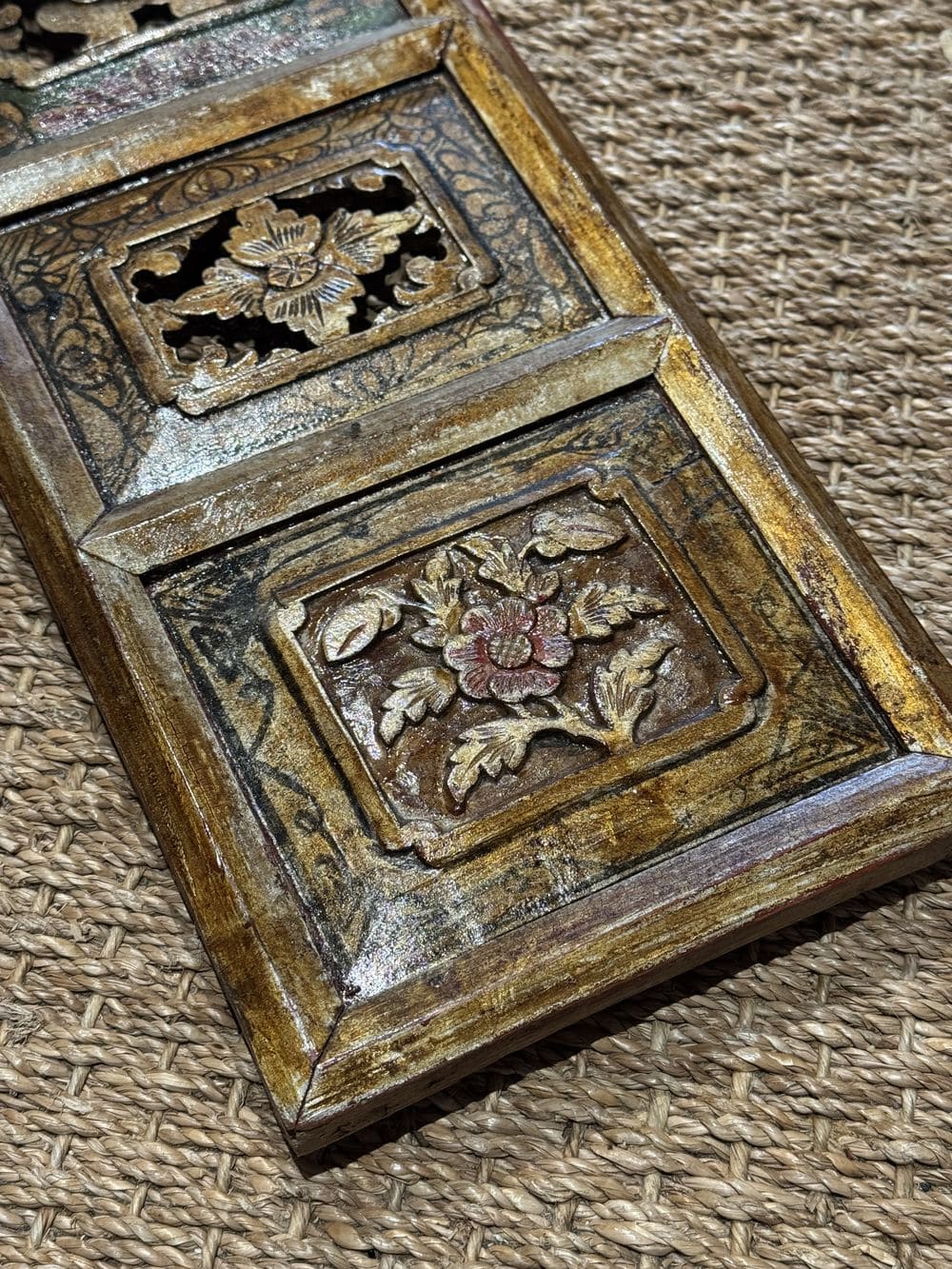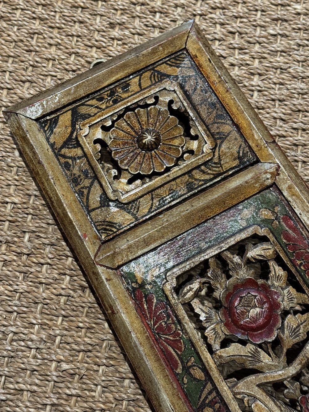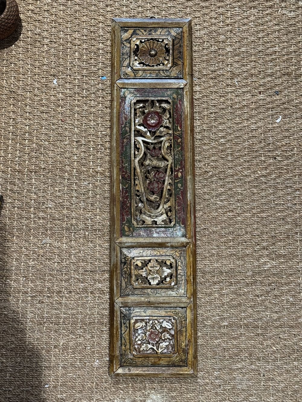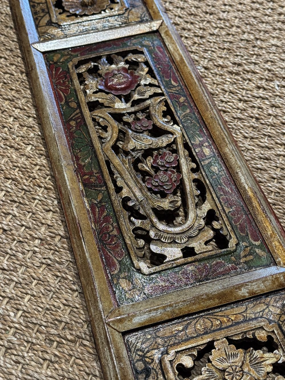 Magnifique et rare imposant panneau en bois sculpté dit « panneau de fenêtre » ajouré et peint à la main – Provenance Asie – Antiques – Décoration – Collection