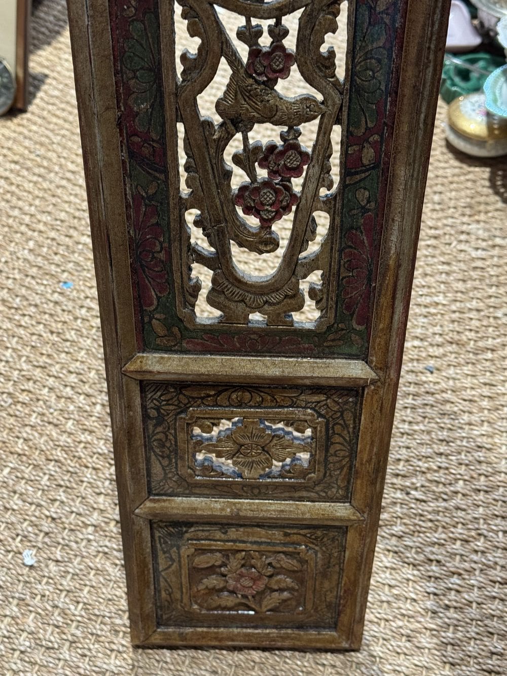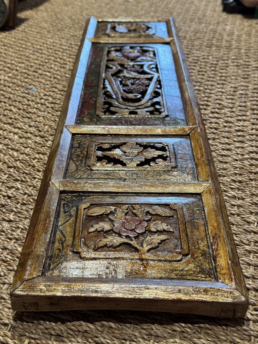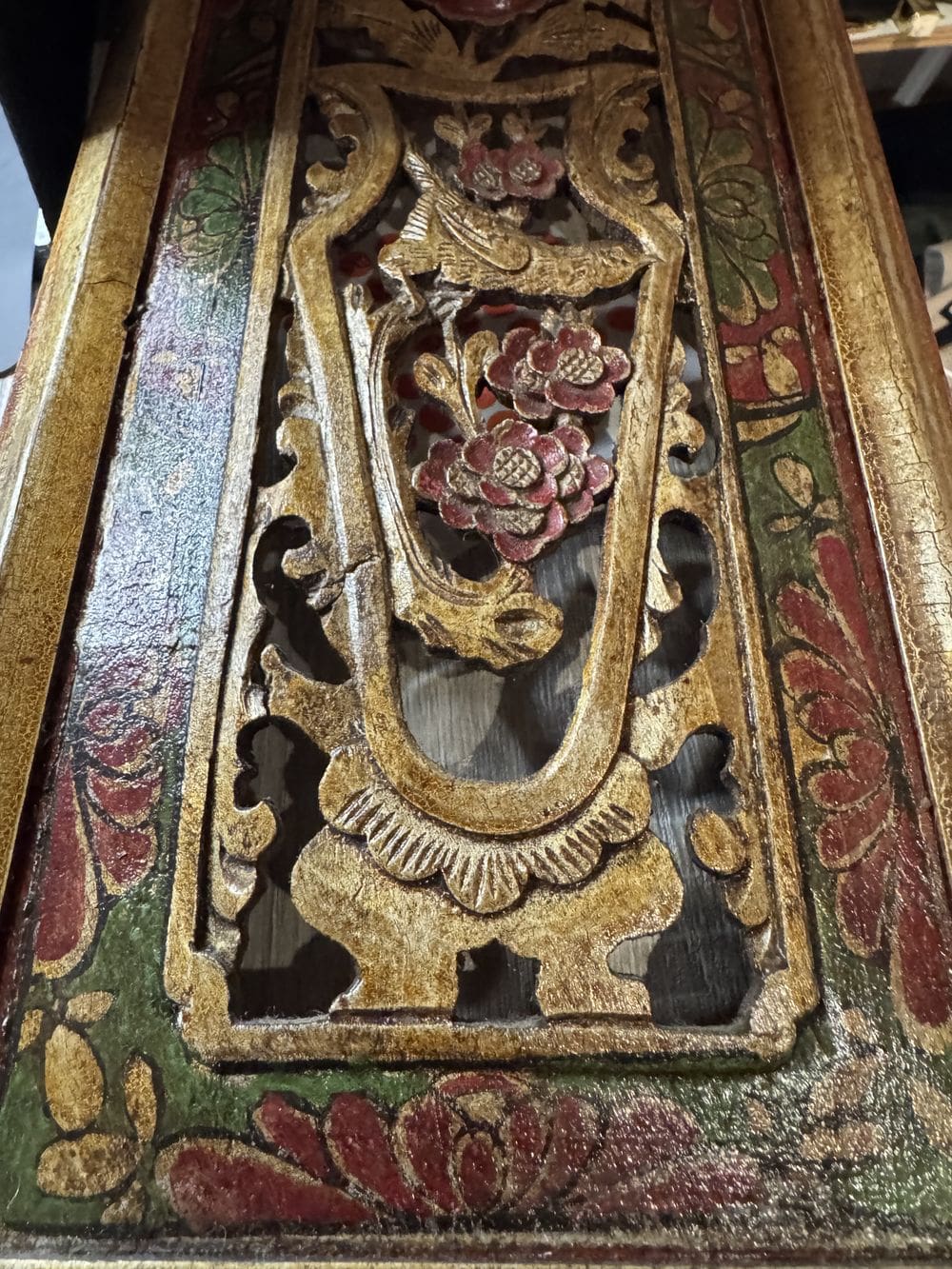 Magnifique et rare imposant panneau en bois sculpté dit « panneau de fenêtre » ajouré et peint à la main – Provenance Asie – Antiques – Décoration – Collection