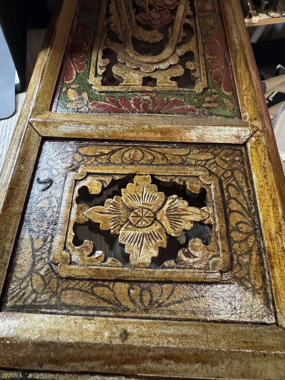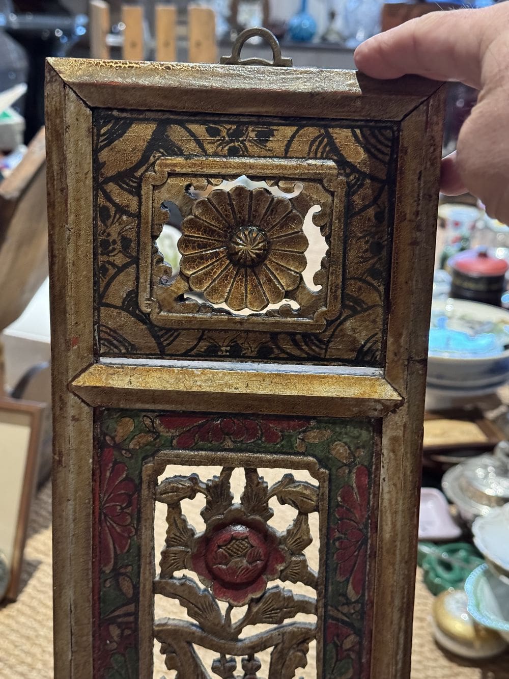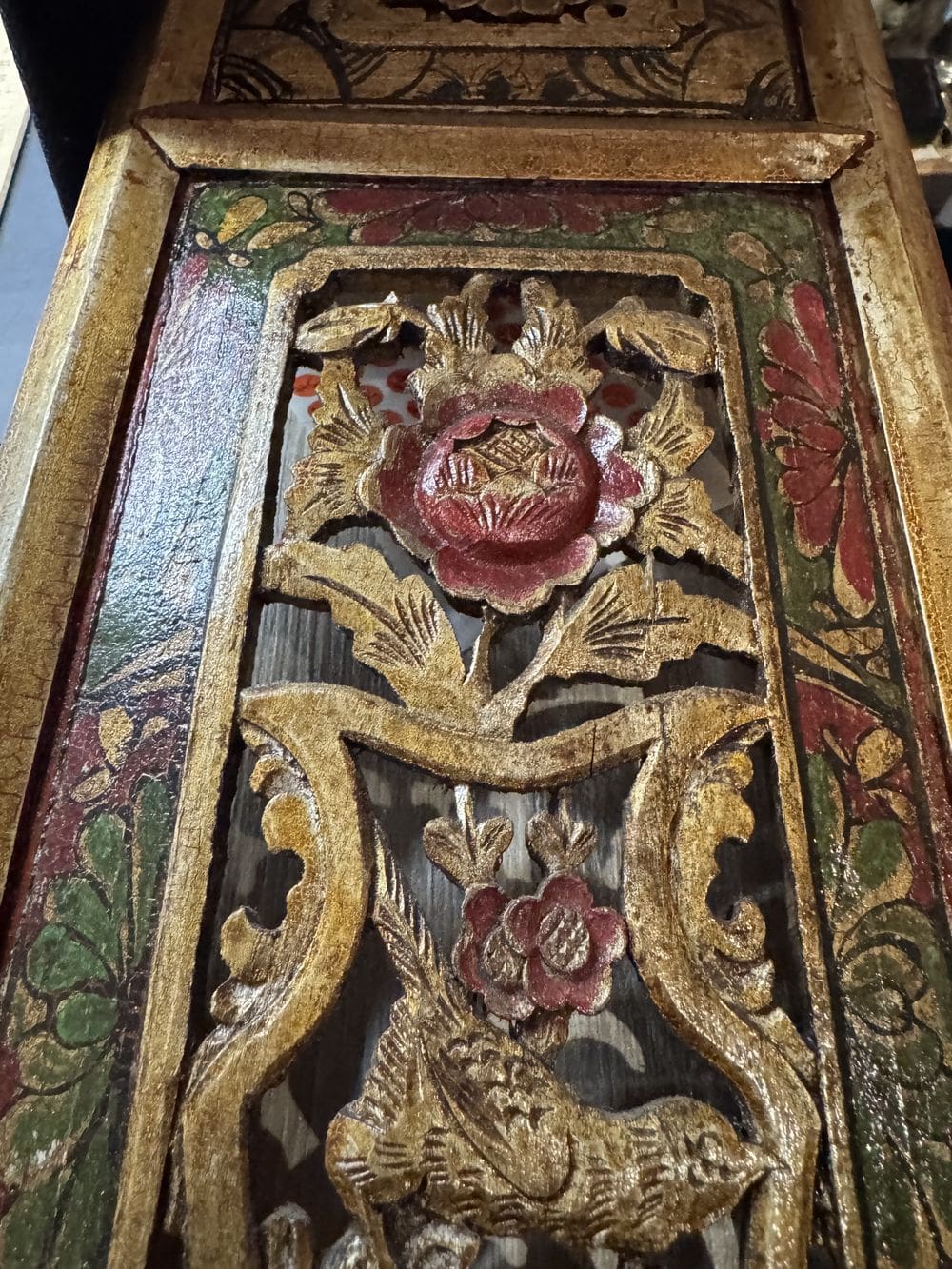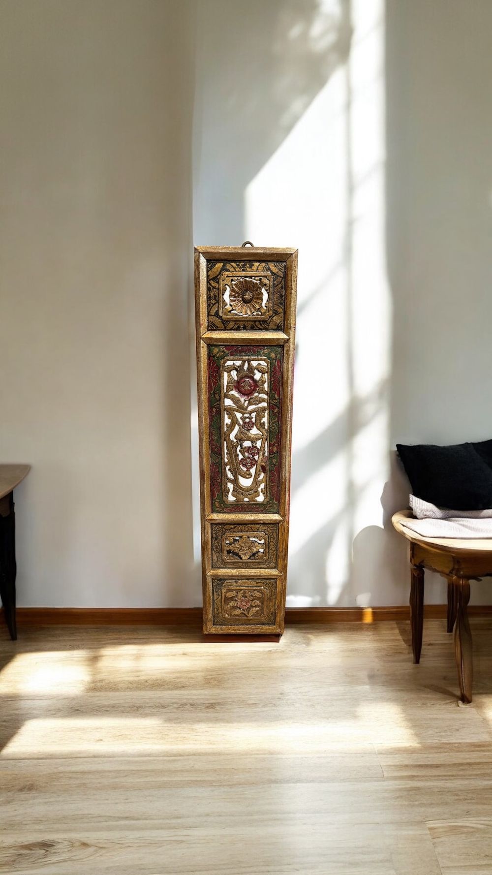 Magnifique et rare imposant panneau en bois sculpté dit « panneau de fenêtre » ajouré et peint à la main – Provenance Asie – Antiques – Décoration – Collection