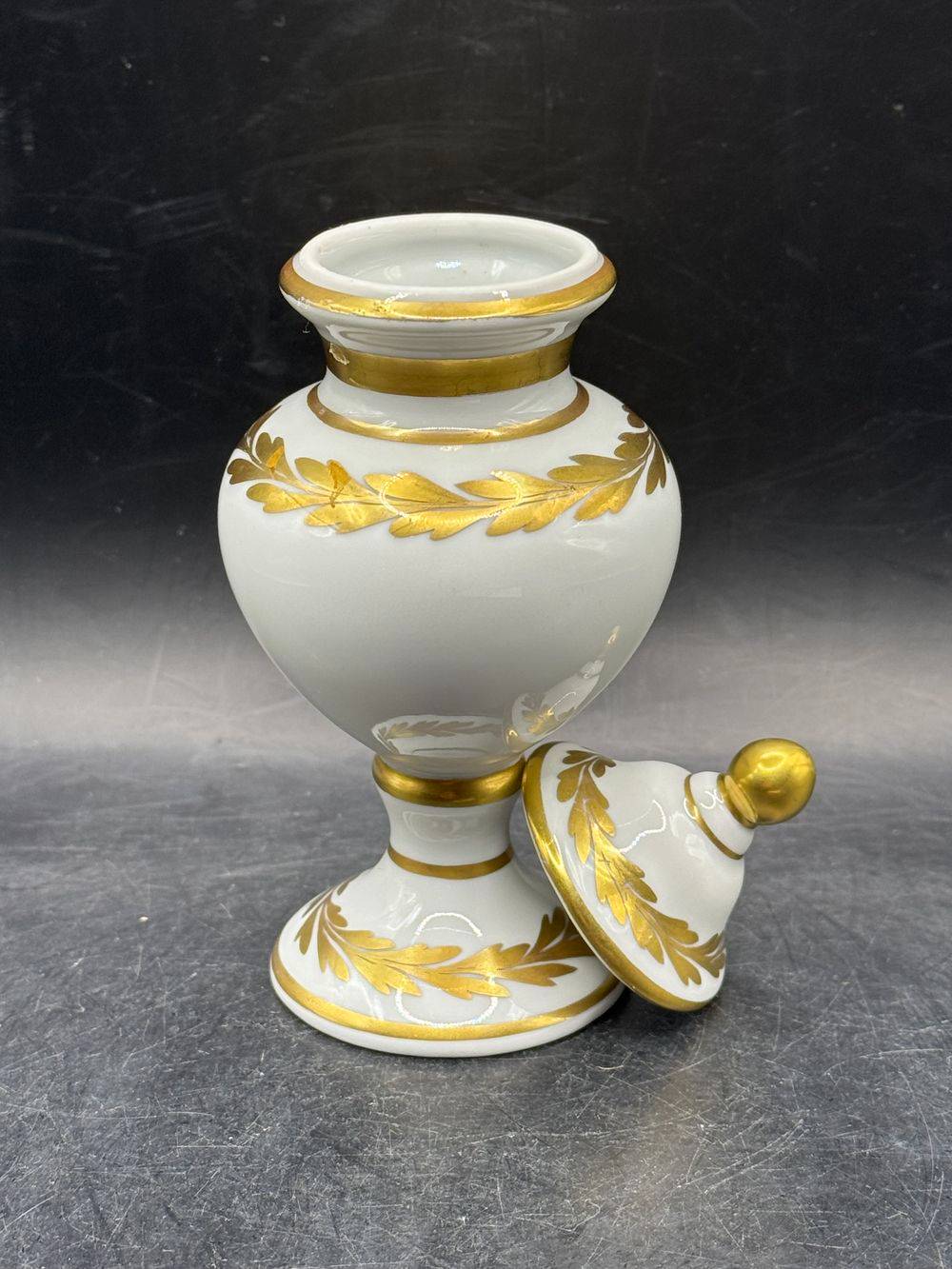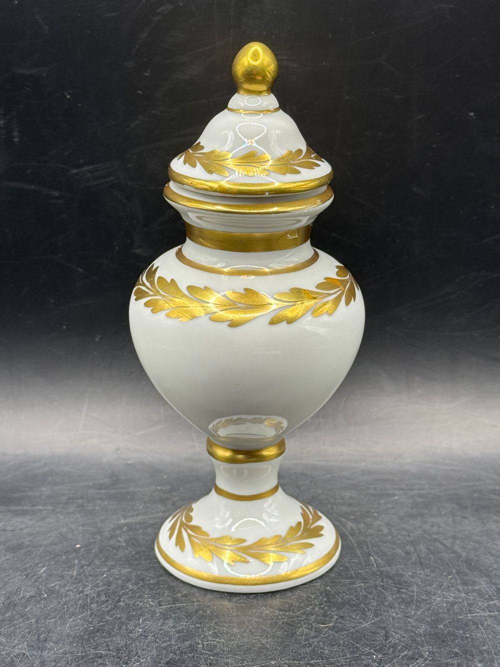 Magnifique et Rare Pot à Pharmacie/Apothicaire en porcelaine blanche et au fin décor doré à la main – Décoration – Collection