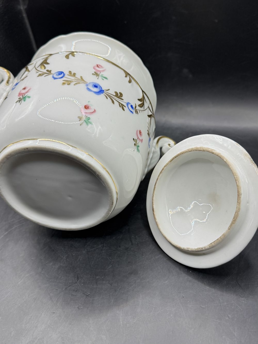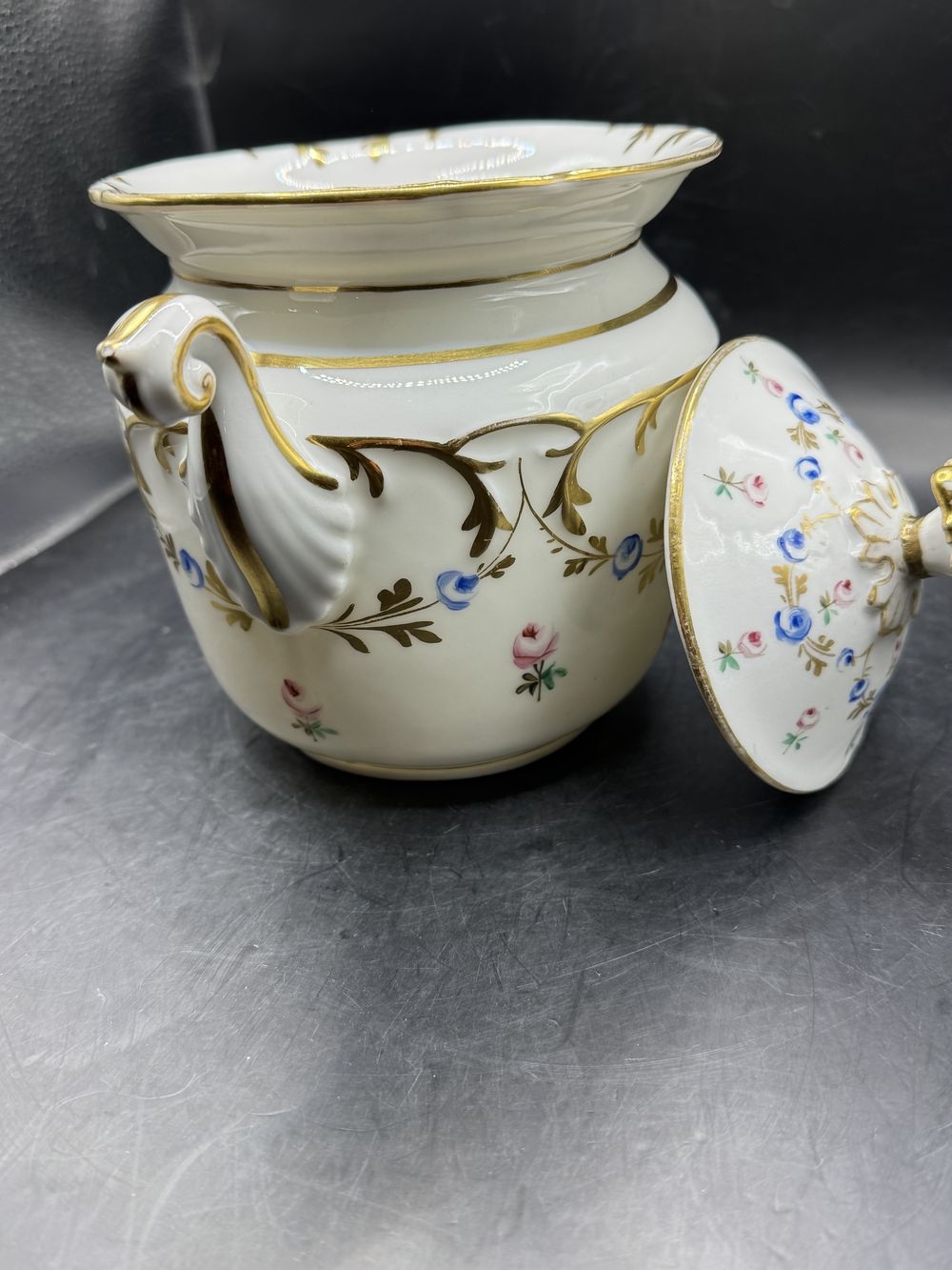 Magnifique et rare sucrier en Porcelaine de Paris – Style Napoléon 3 – Décor floral et dorure – Collection – Décoration
