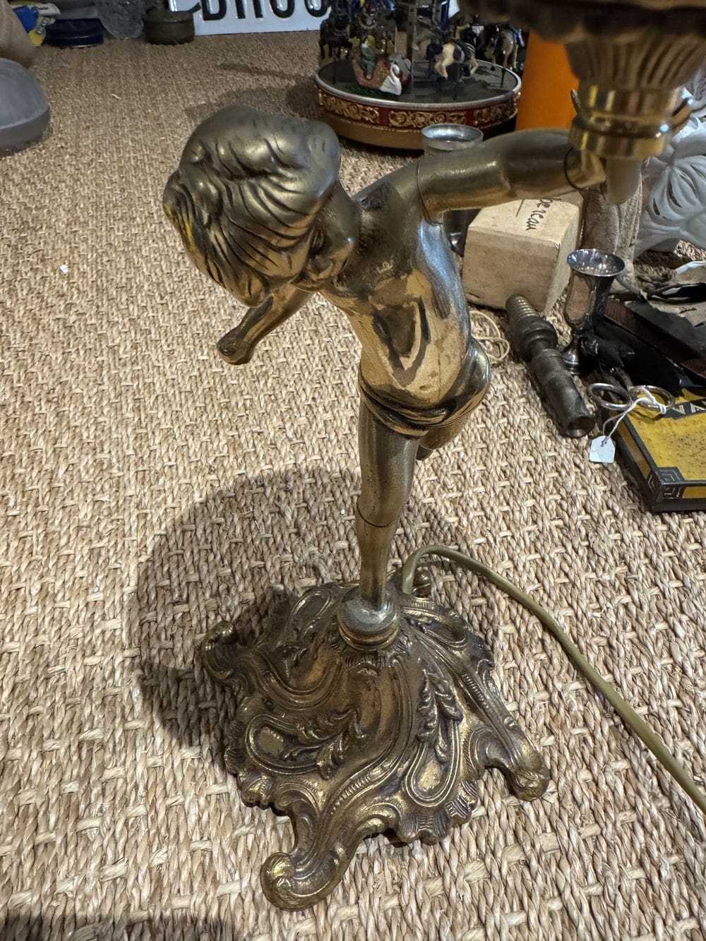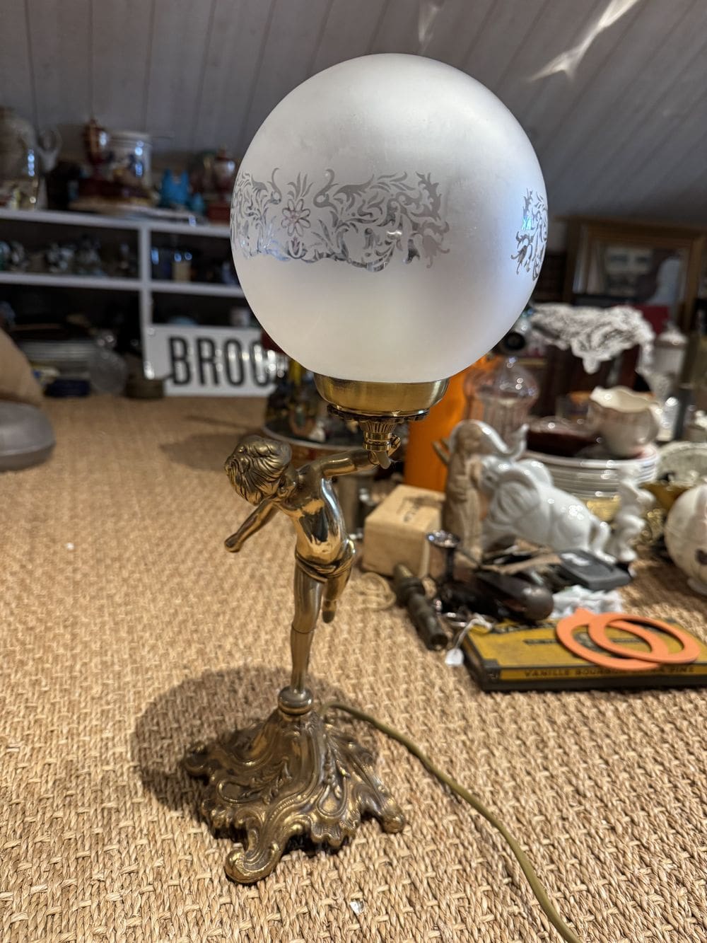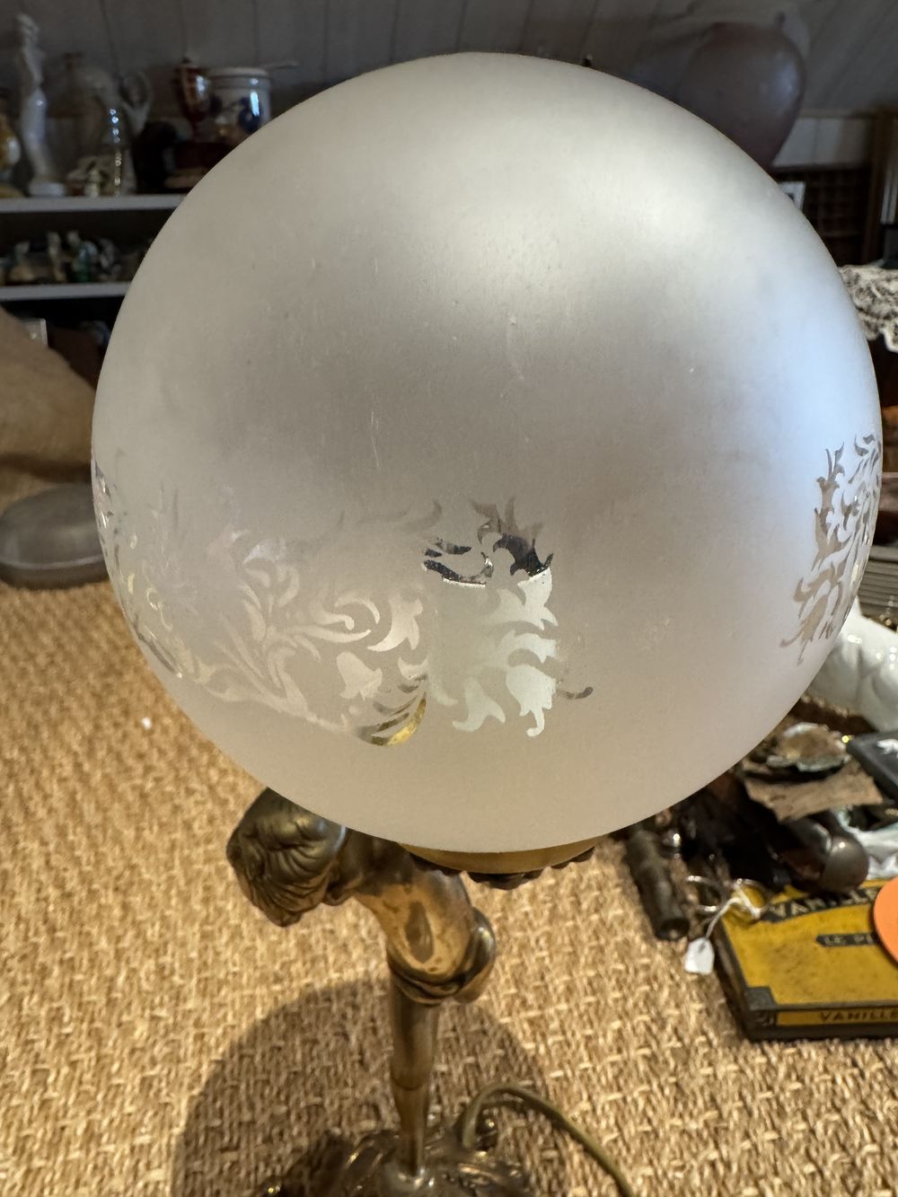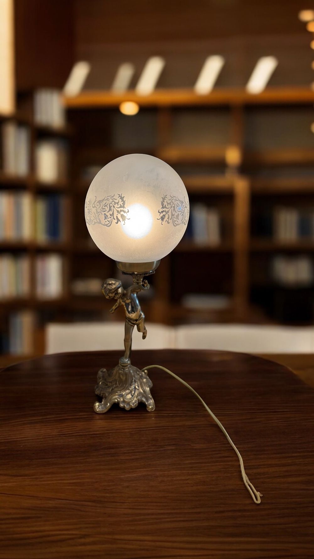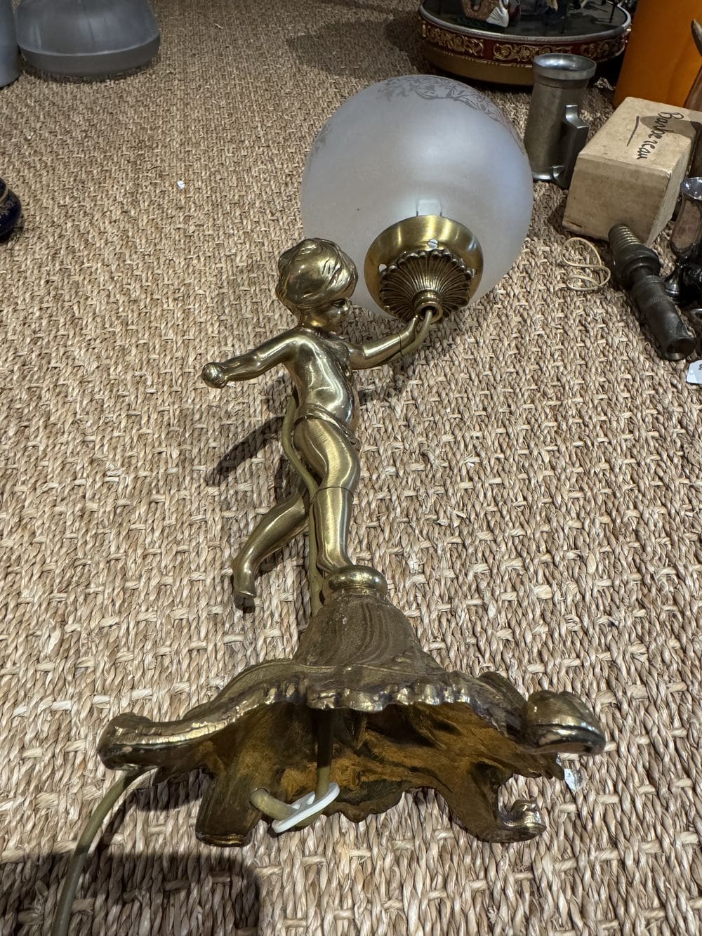 Magnifique Lampe de chevet en bronze doré et son Angelot avec son globe en verre gravé