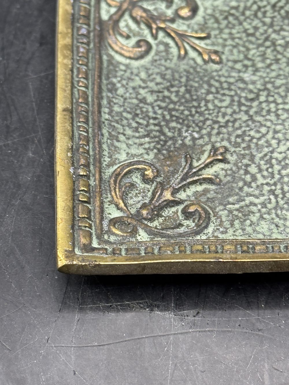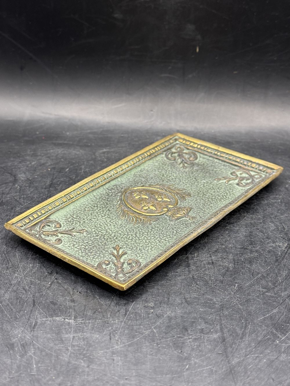 Max Le Verrier – Rare vide poche en bronze (patine verte) représentant trois fleurs de Lys (Fleurs de France) – Vers 1930 – Ensemble signé – Collection – Déco