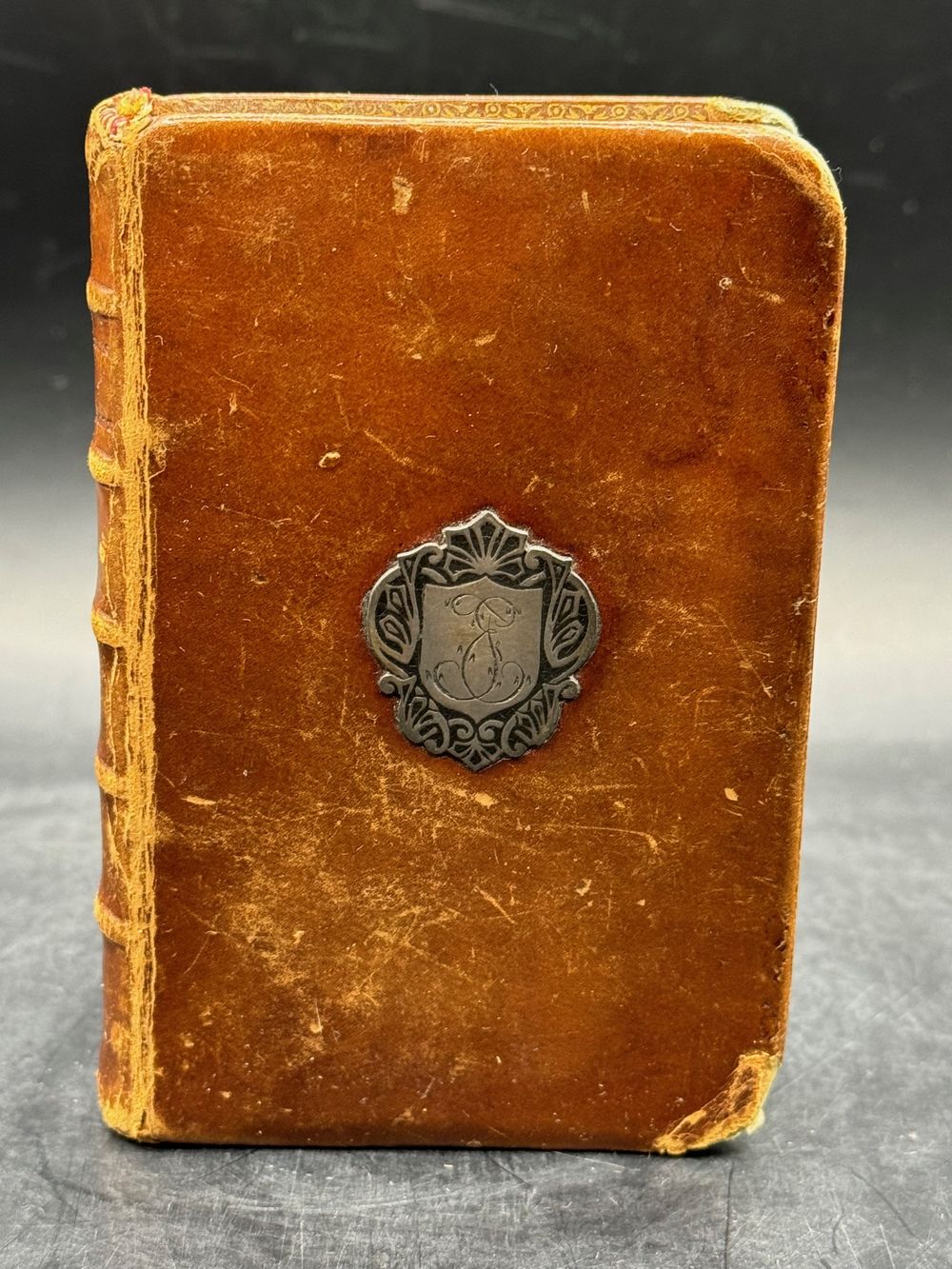 Mini-livre ancien, miniature, cuir marron – l’Imitation de Jésus Christ – Alfred Mame et Fils Editeurs – 1880 – Incrusté laiton et initiales