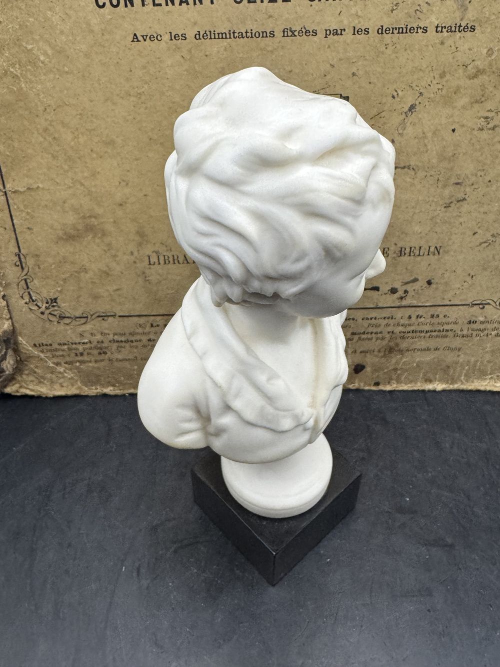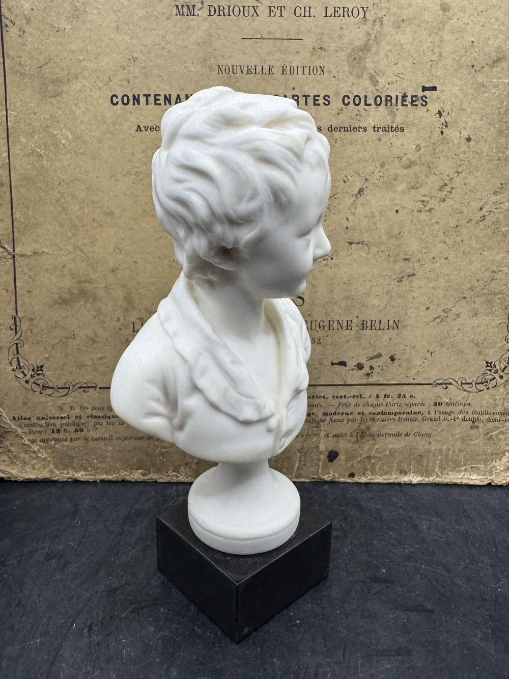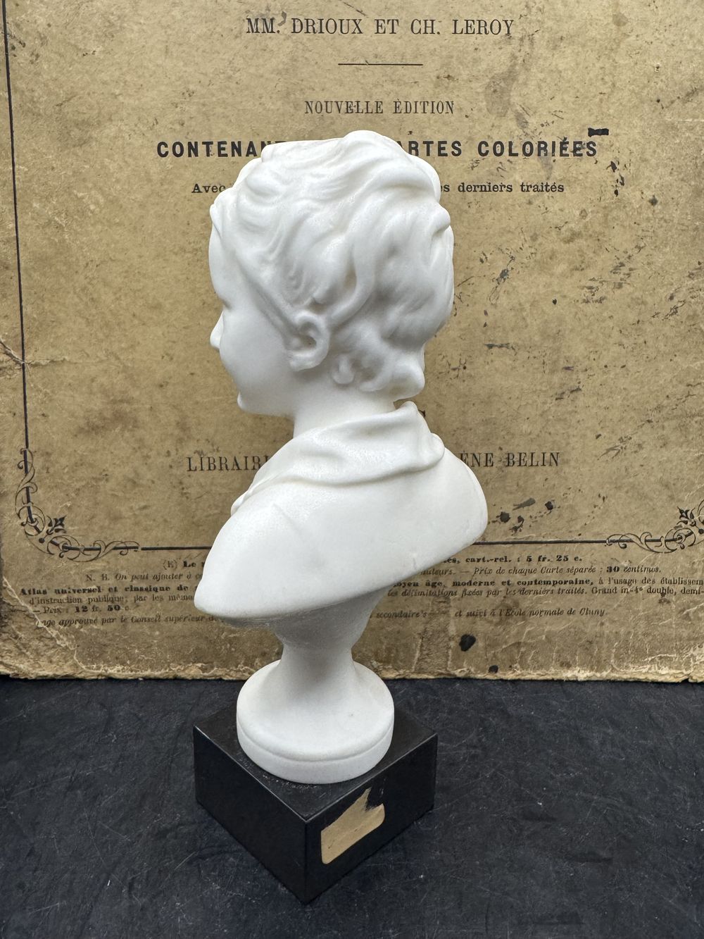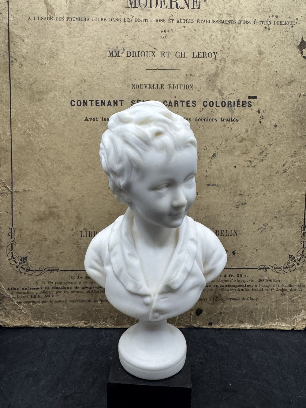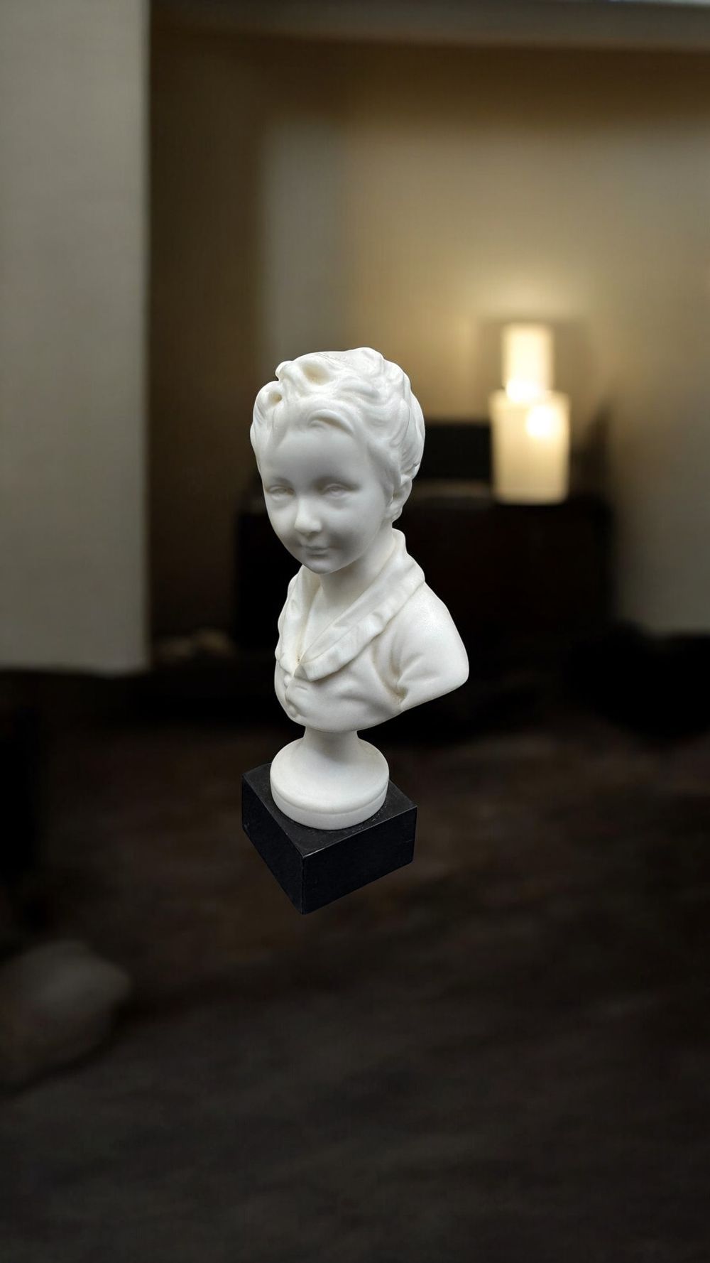 Petit buste d’enfant en Albâtre – D’après Jean Antoine Houdon (1741-1828) – Sur socle en marbre noir – Décoration – Collection
