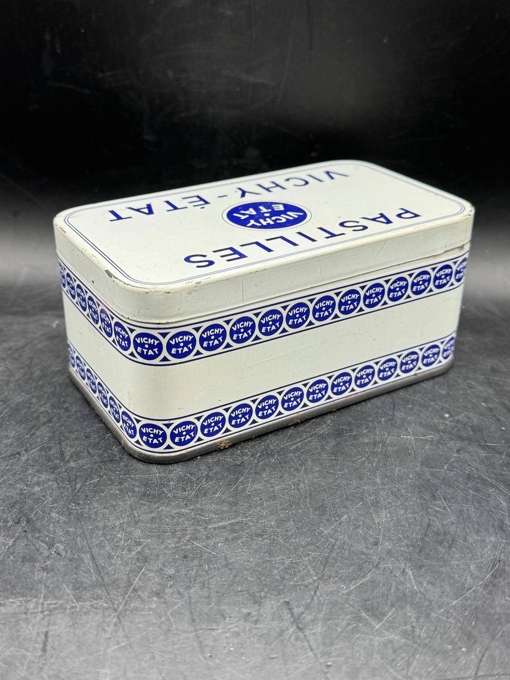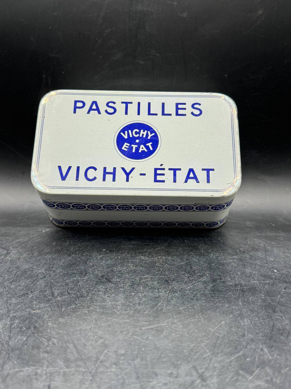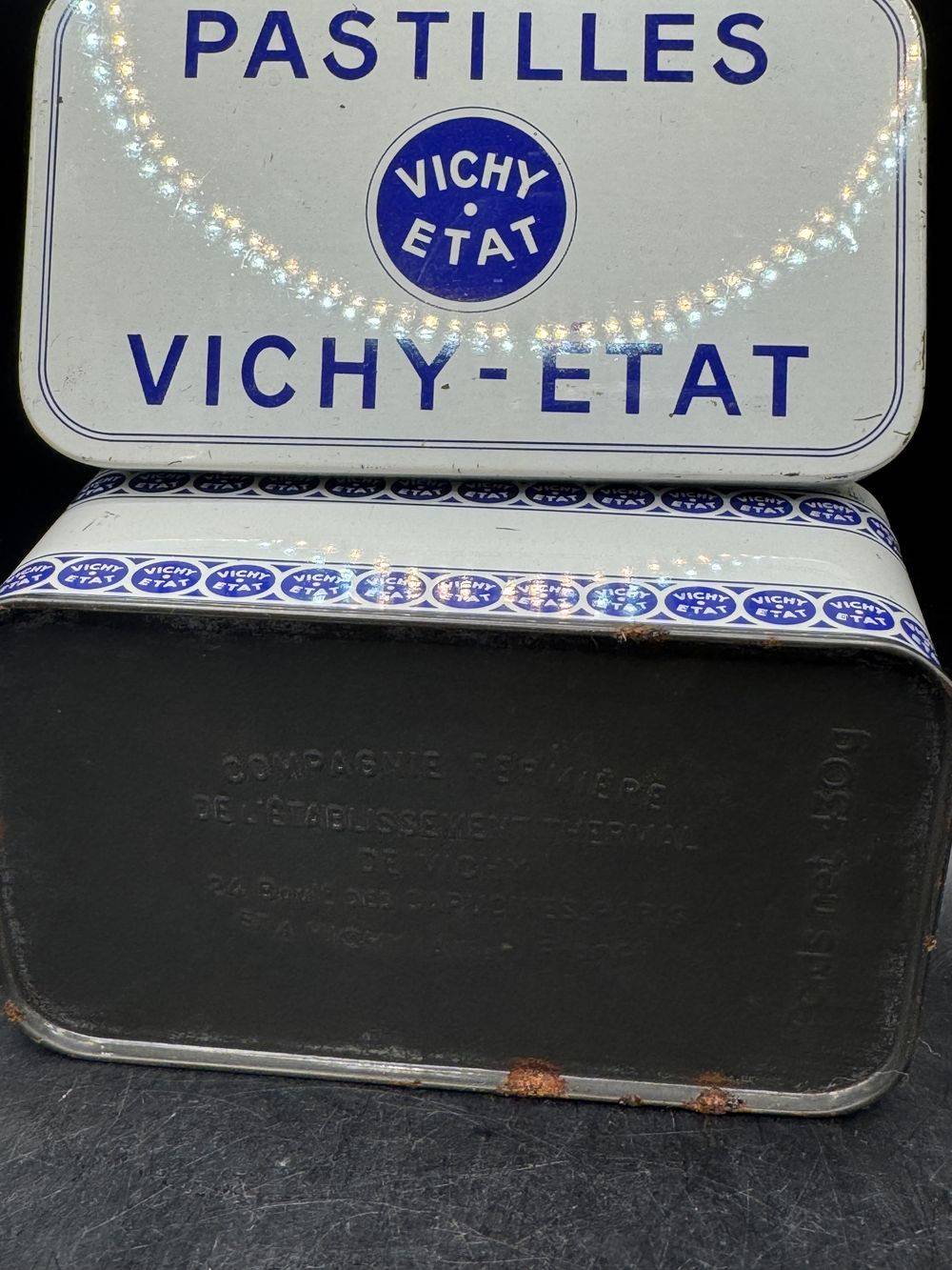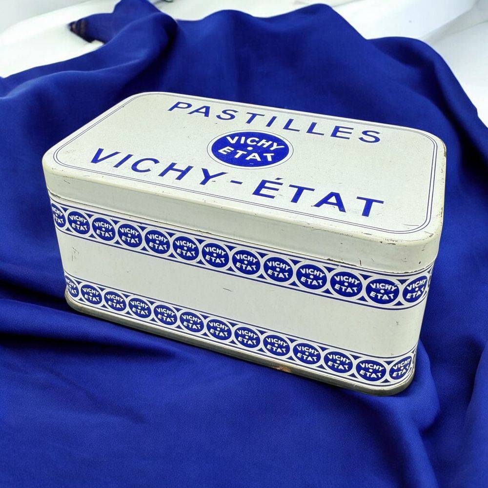 Petite et charmante boîte ancienne pastilles Vichy Etat – Blanche et bleue