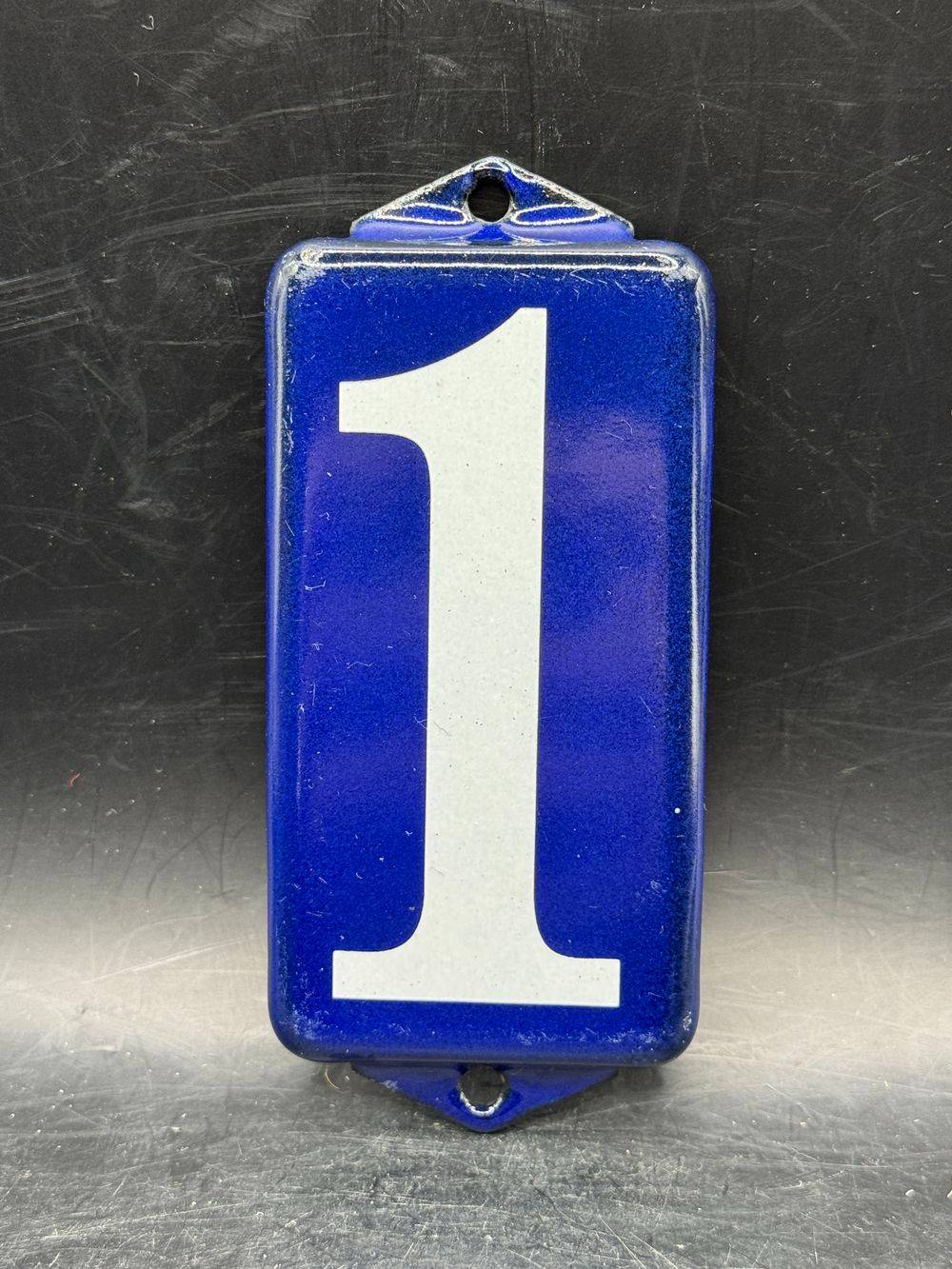 Petite plaque émaillée bleue et blanche avec le chiffre un (2)