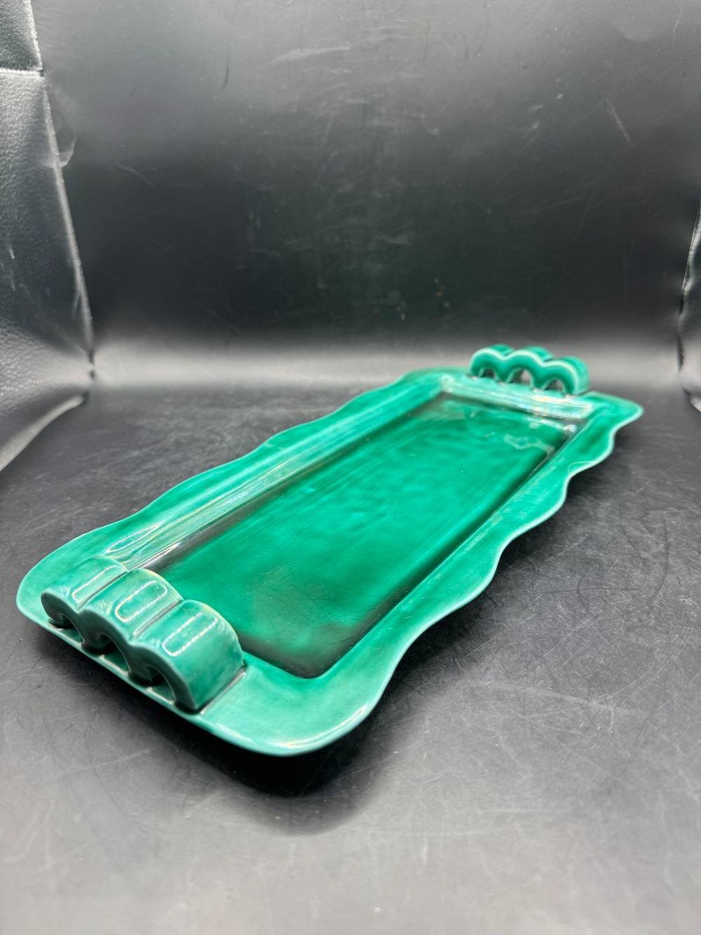 Plat à gâteau / à Cake de couleur verte – Franor Royal – Paris – Made in France – Vers 1950 – Décoration – Collection