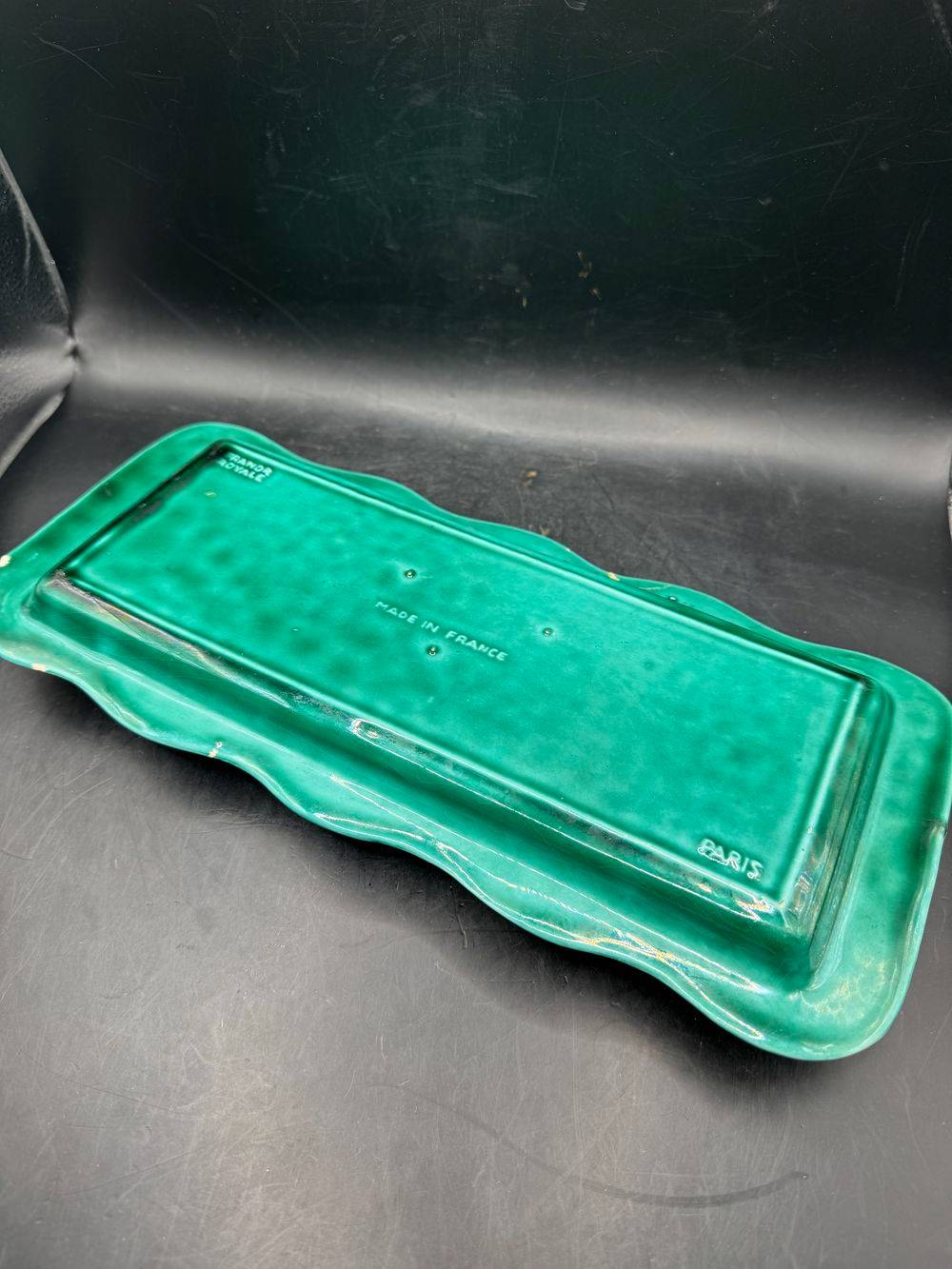 Plat à gâteau / à Cake de couleur verte – Franor Royal – Paris – Made in France