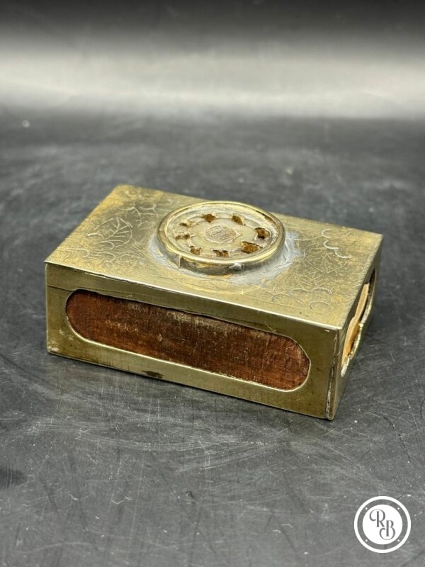 Rare Ancien étui à boîte d’Allumettes en laiton et richement et finement décoré à la main – Collection