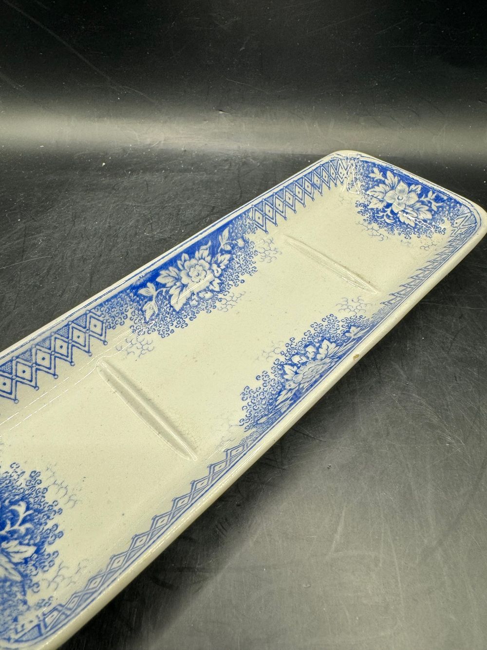 Rare Ancien ravier faïence fine blanche et bleu – Sarreguemines – U&C décor Jardinière – Vers 1900 – Décoration