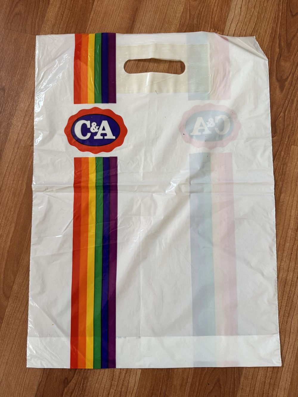 Rare ancien sac en plastique des années 80′ – C&A – Arc en Ciel – Vintage – Collection – Décoration