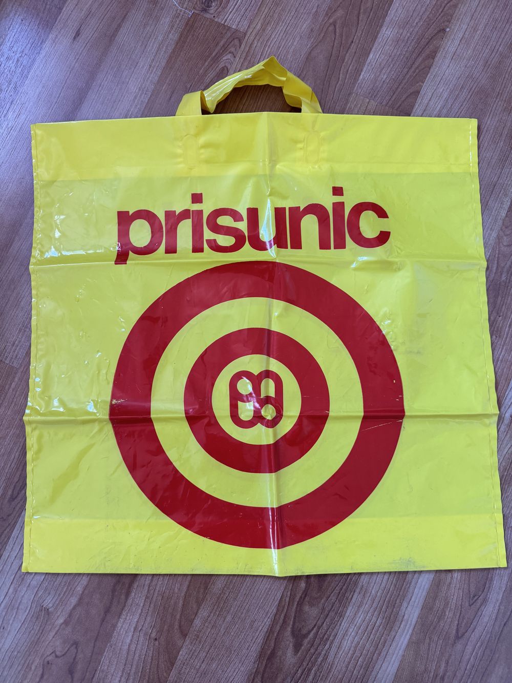 Rare ancien sac en plastique des années 80′ – Prisunic – Jaune logo rouge – Vintage – Collection – Décoration