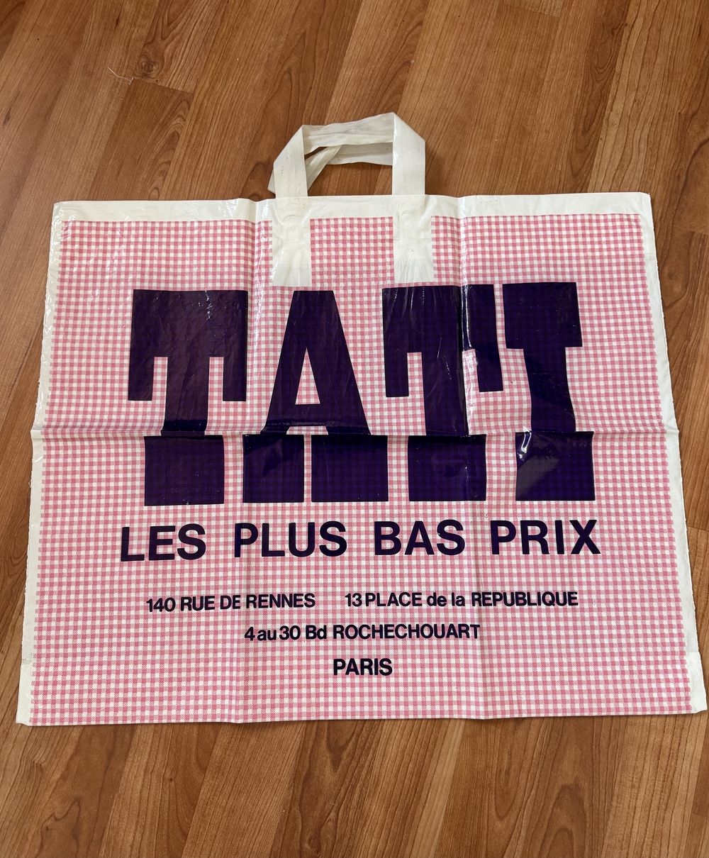 Rare ancien sac en plastique des années 80′ – Tati – Paris – Rose logo bleu – Vintage – Collection – Décoration
