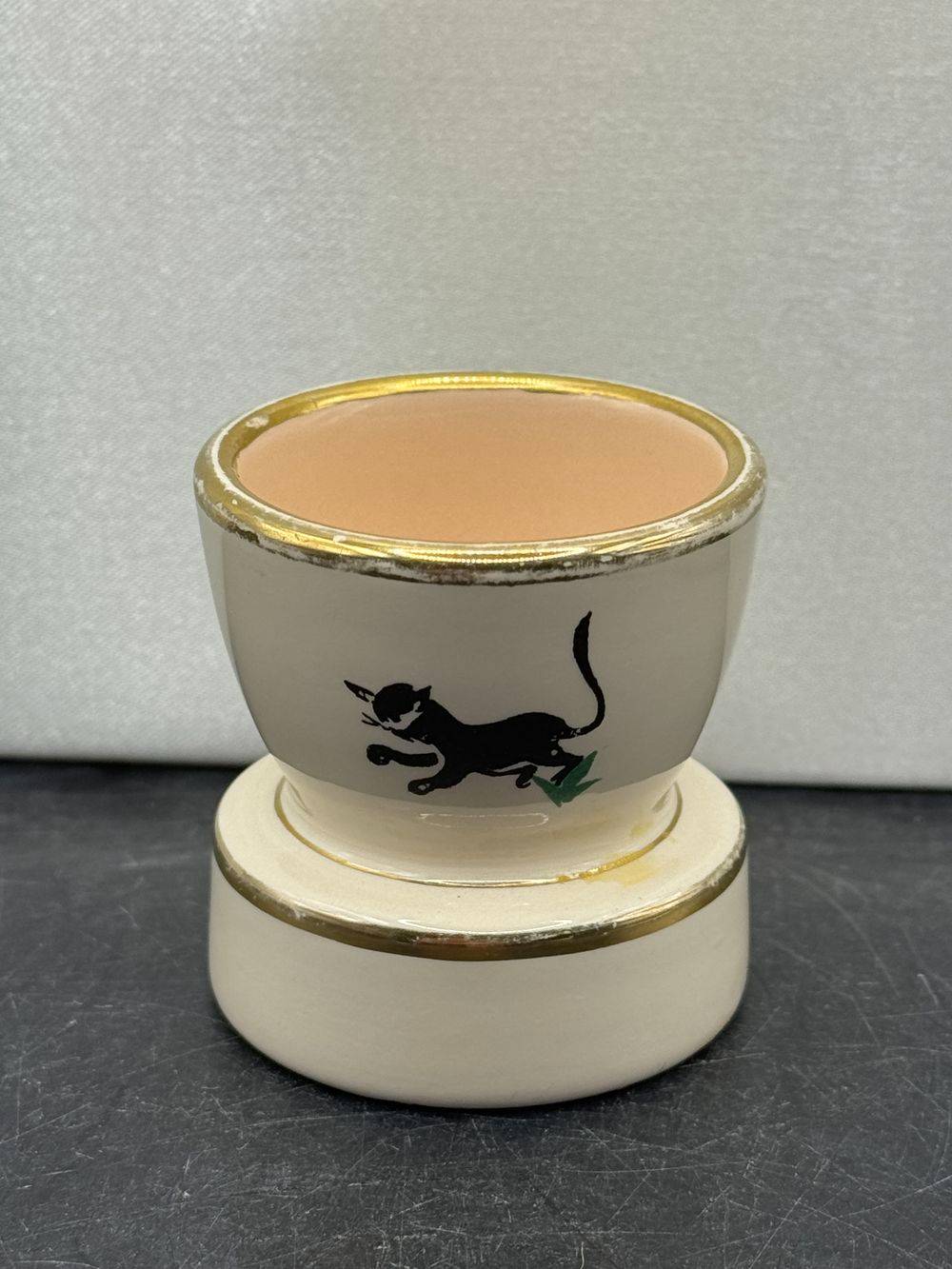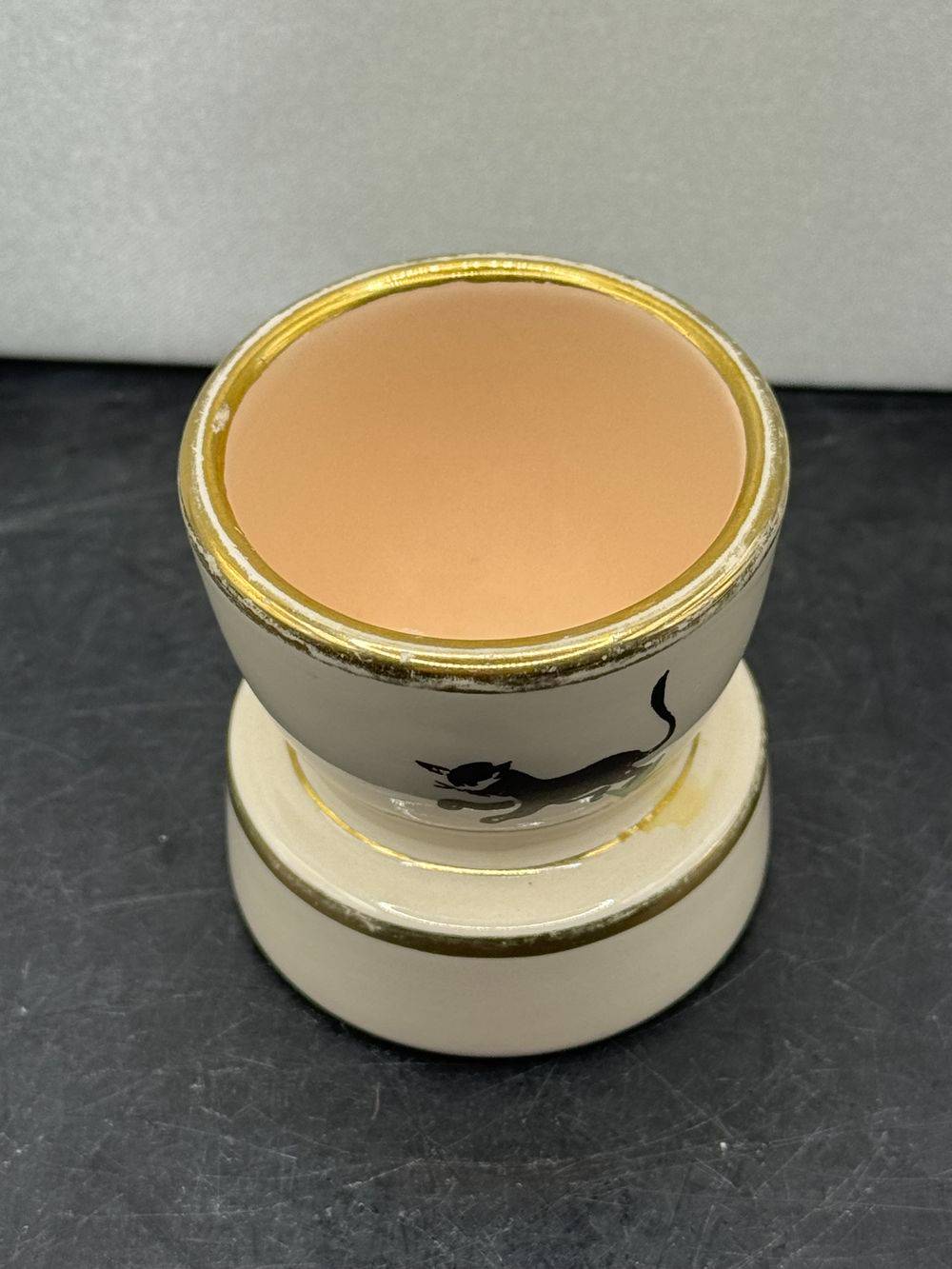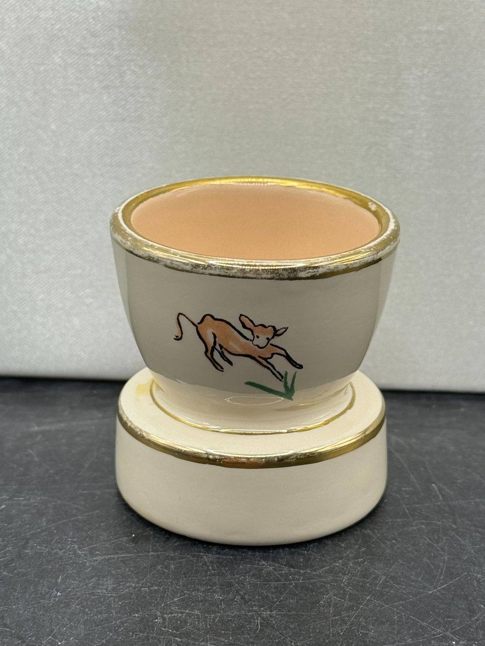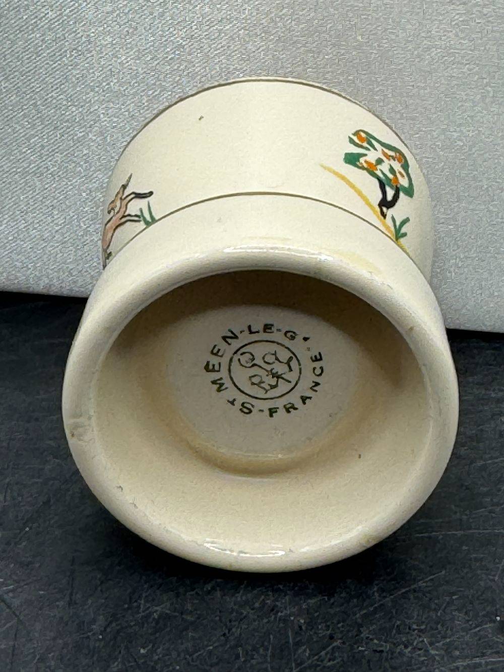 Rare Coquetier (2) en Faïence de Saint Méen le Grand – Rivière Letort – Décor naïf et liseré or sur le bord haut – Décoration – Collection