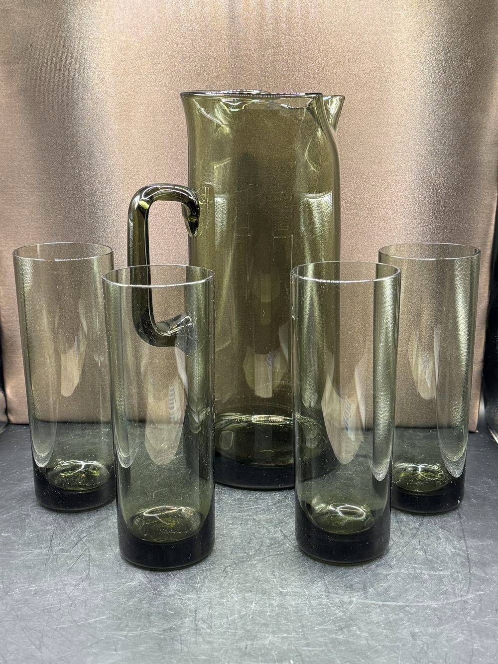 Rare et Magnifique Set / Service à Orangeade – 5 pièces – En verre fumé des années 70