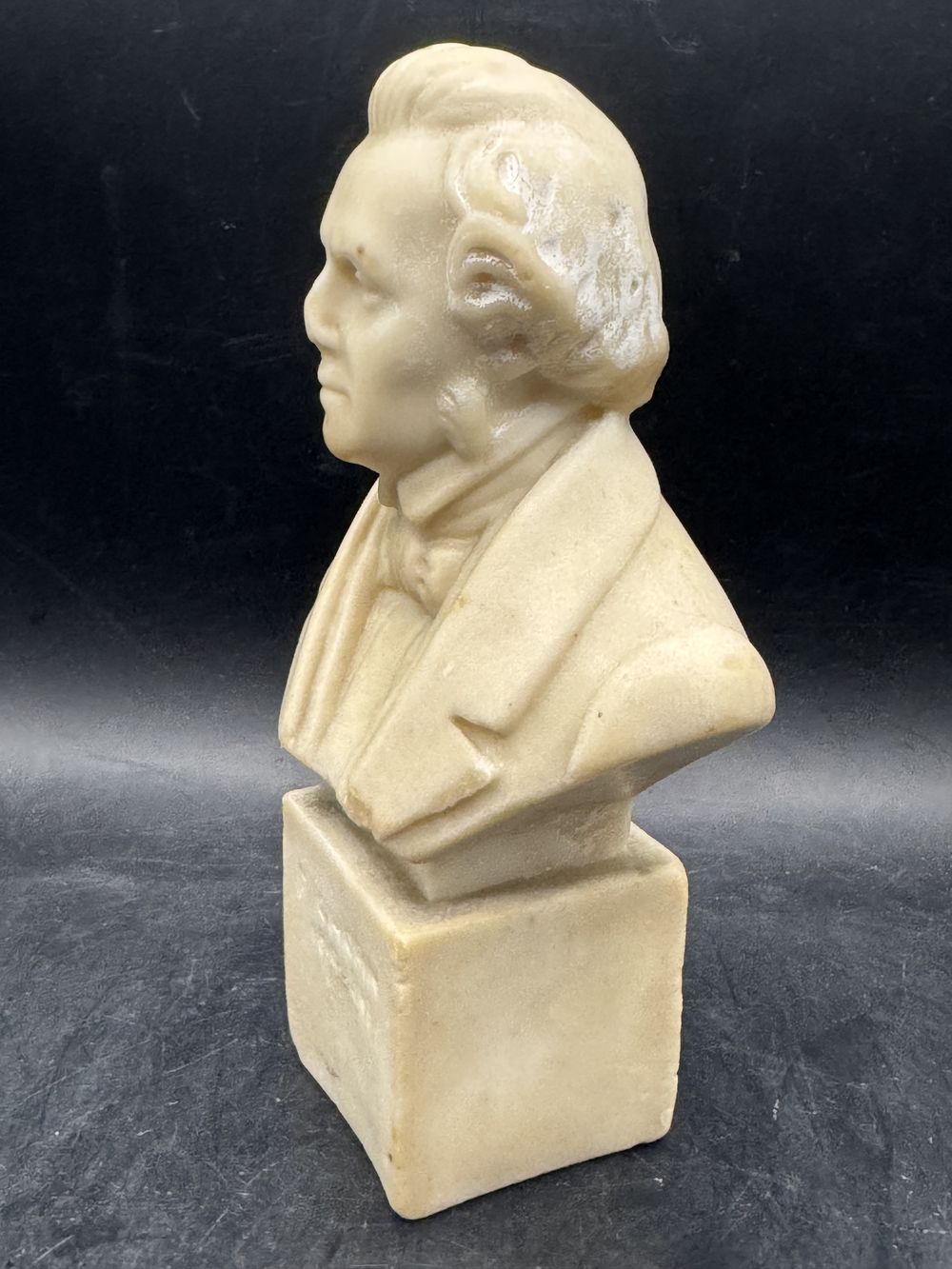 Rare petit buste ancien en pierre représentant Frédéric Chopin – Signé l.e. – Décoration – Collection