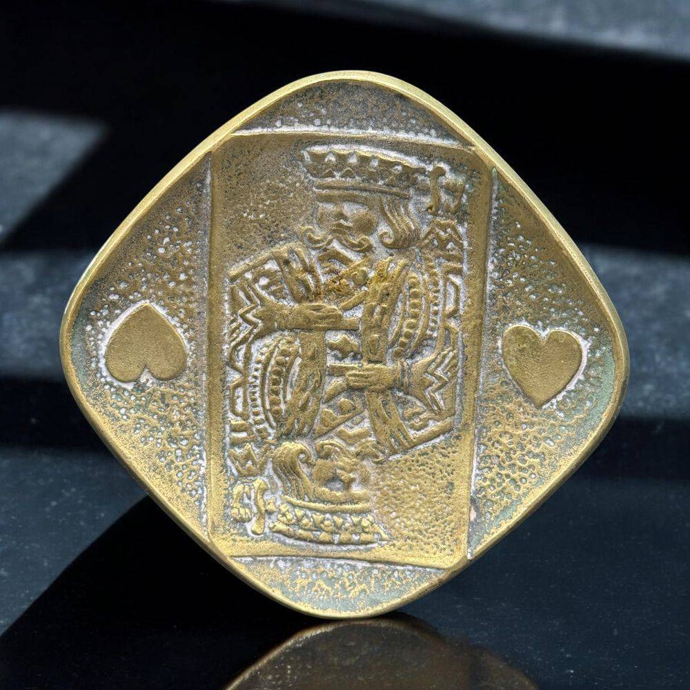Rare petit vide-poche / Coupelle en bronze signé-e Max Le Verrier (1891-1973) représentant une carte à jouer – Le Roi de cœur – Circa 1930 – Collection – Décoration