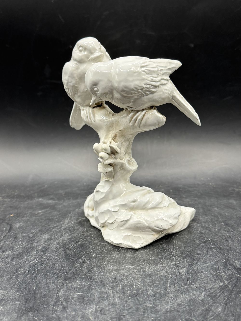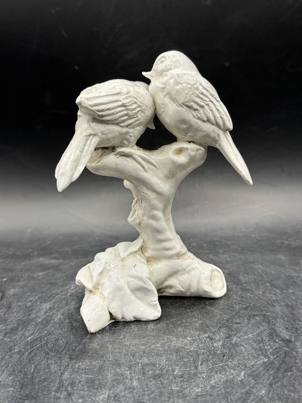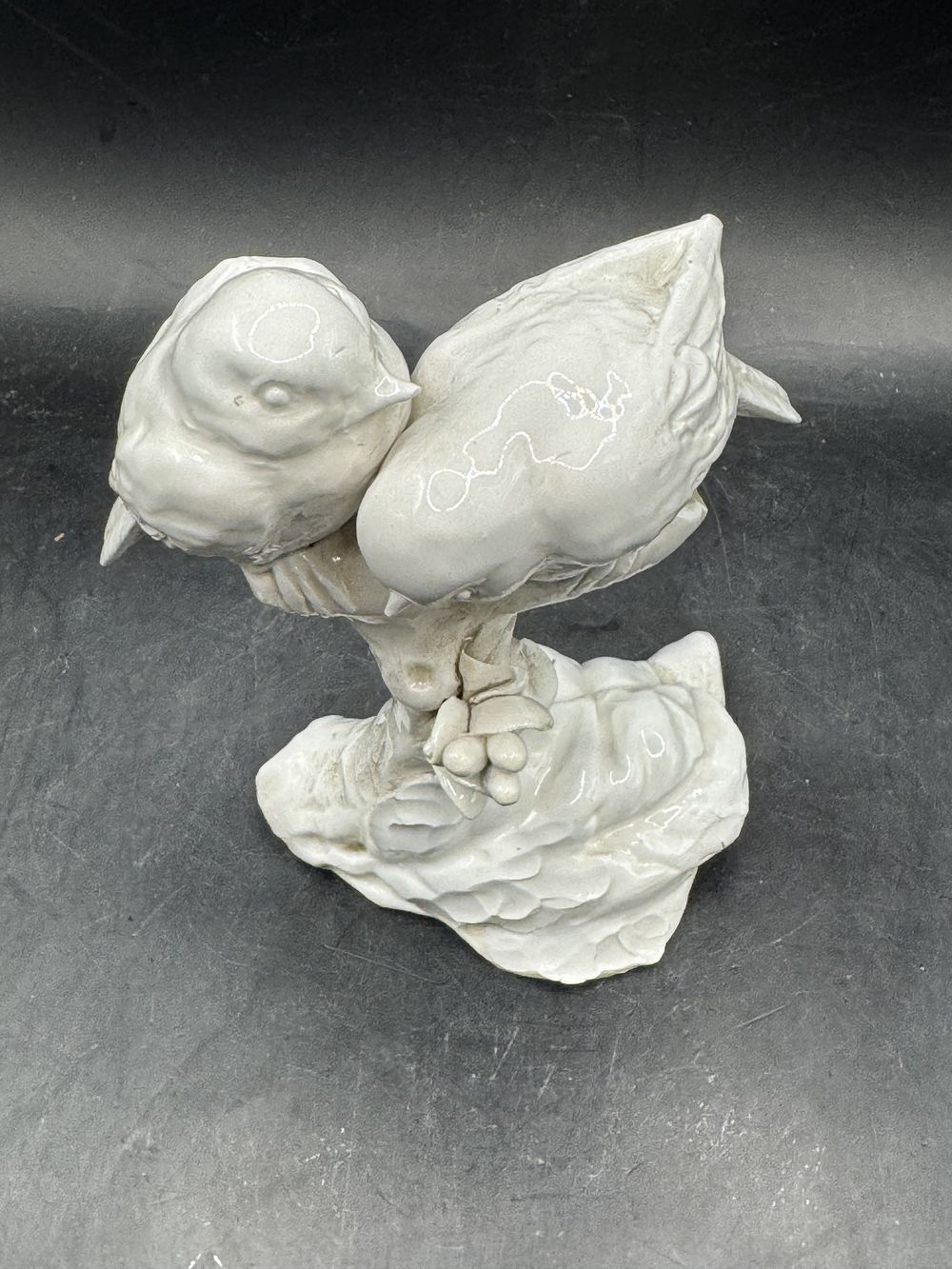 Rare petite statuette duo d’oiseaux en porcelaine – Mésanges – Pinsons – Moineaux