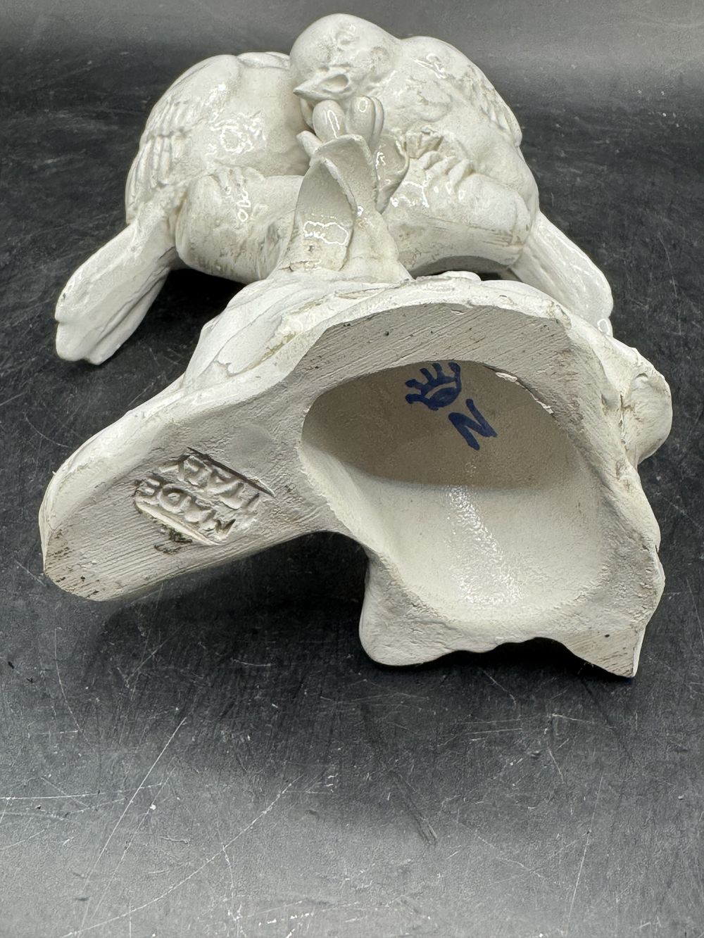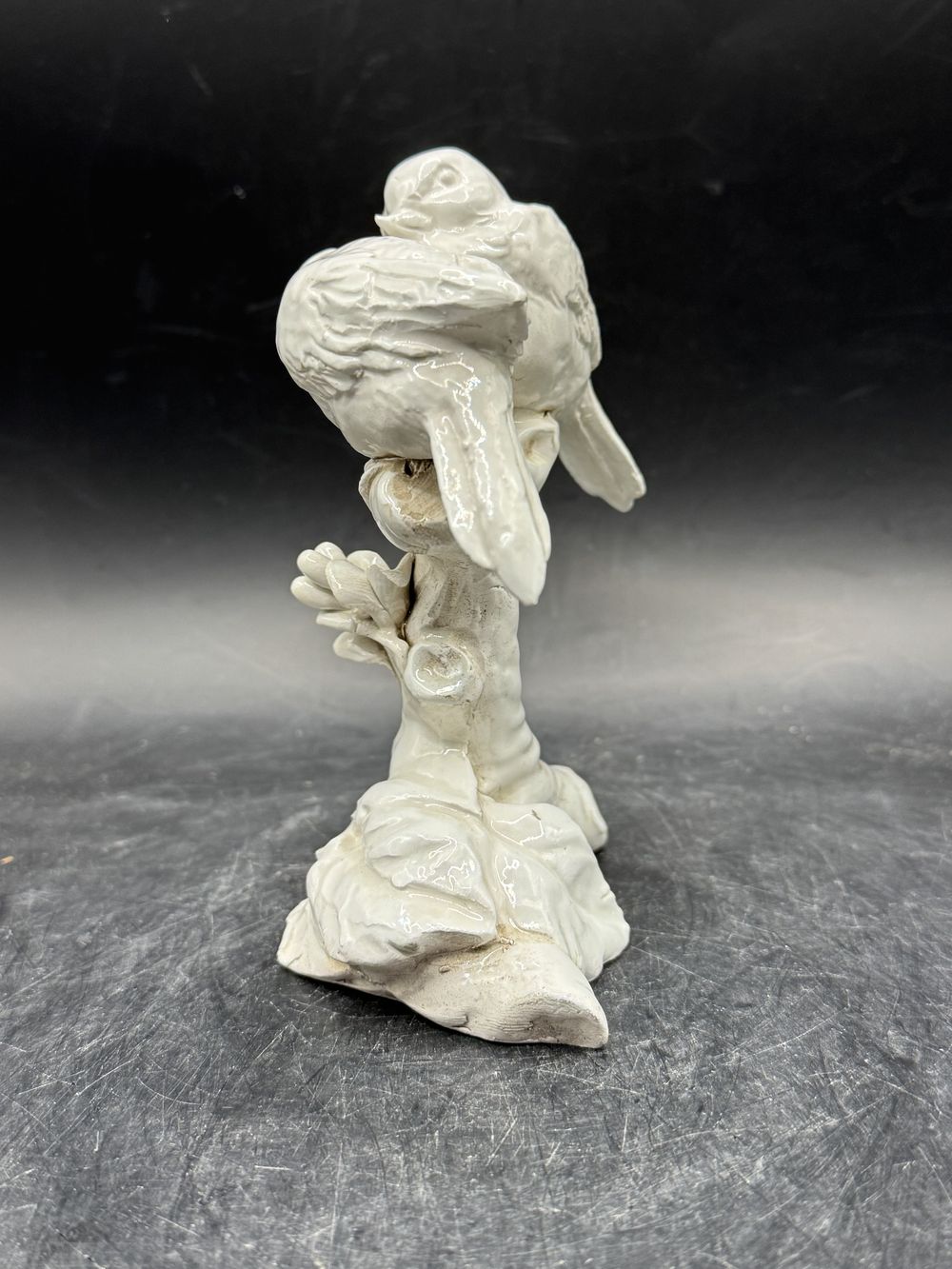 Rare petite statuette duo d’oiseaux en porcelaine – Début 20ème – Mésanges – Pinsons – Moineaux – Capodimonte – Made in Italie – Estampillée – Collection – Décoration