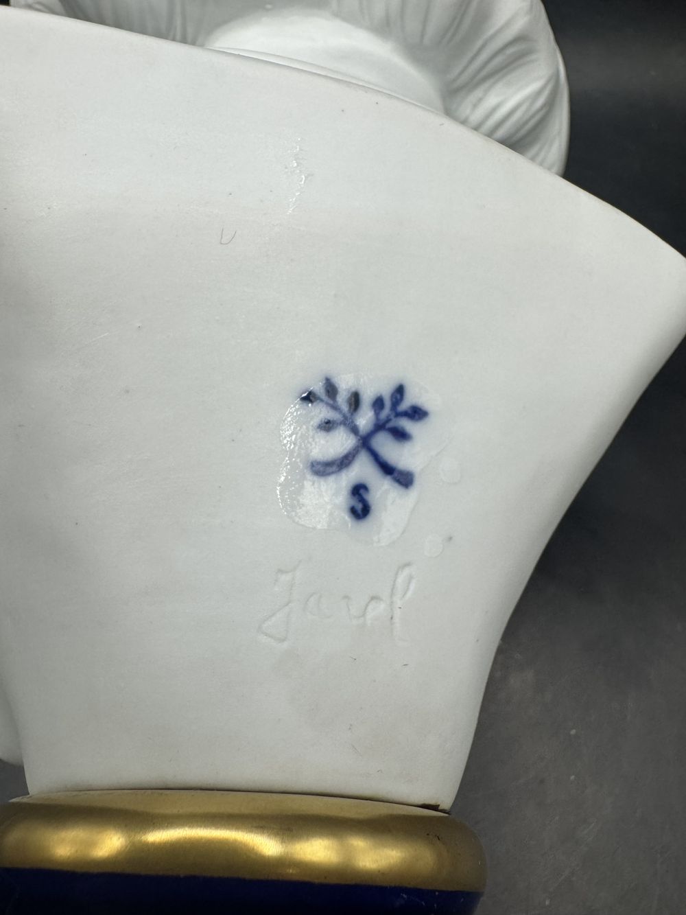 Rare Statuette/buste ancien en biscuit de porcelaine représentant Frédéric Chopin – Sur piédouche en porcelaine bleu – signé Jarel et doublement estampillé des ateliers Slavicek le Raincy – Décoration – Collection