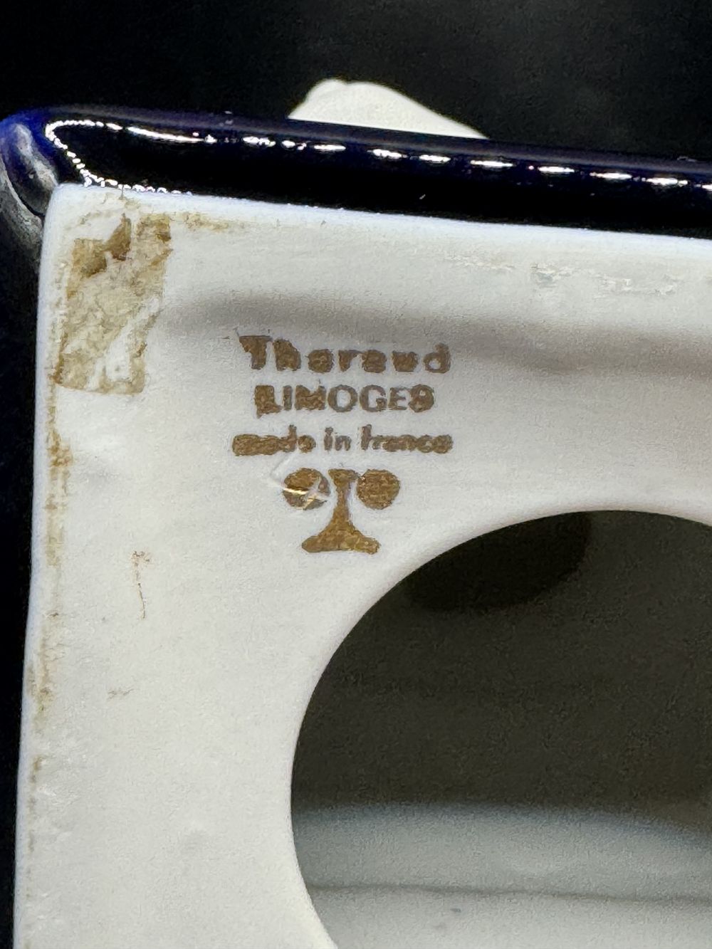 Sur piédouche carré en porcelaine bleu par Camille Tharaud – Limoges – France