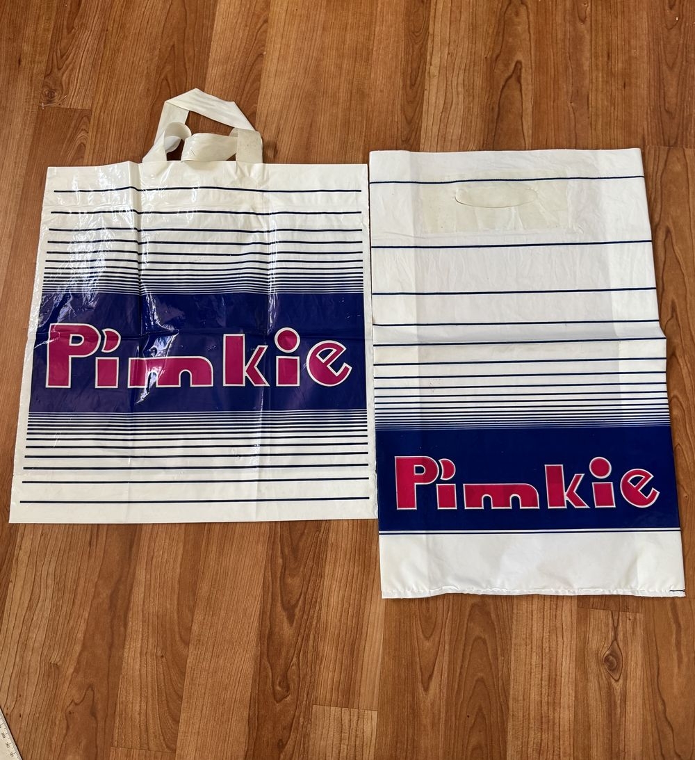 Rares deux anciens sacs en plastique des années 80′ – Pimkie- Bleu et rose – Vintage – Collection – Décoration
