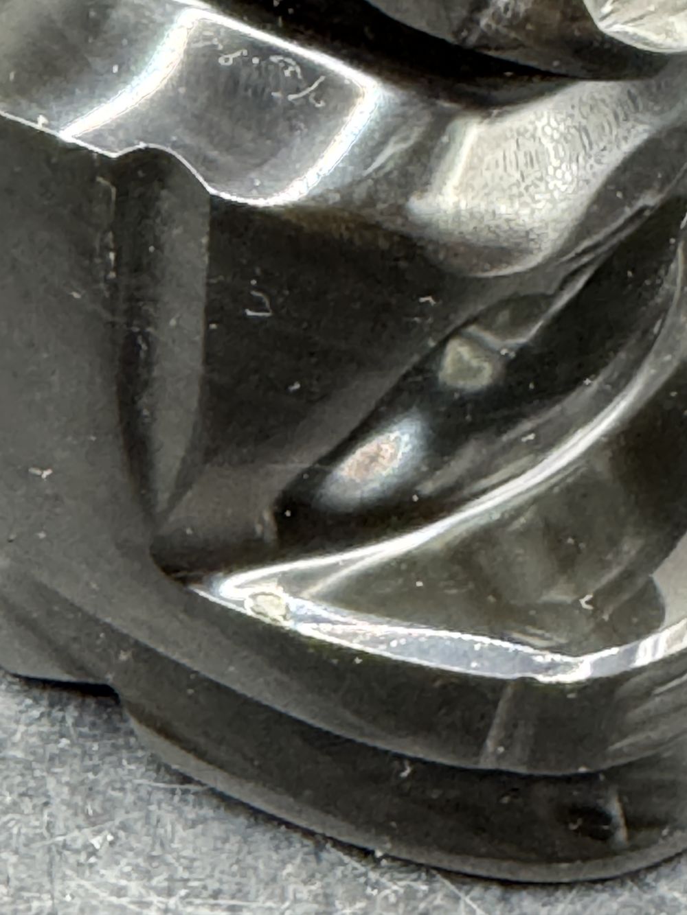 Statuette Guerrier/Totem Aztèque/Maya en pierre d’Obsidienne noire brute avec grande coiffe typique – Origine/Mexique