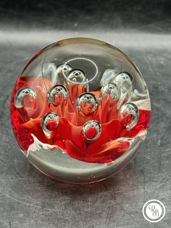 Sulfure (Presse papier en verre) – De couleurs Rouge et blanche – Déco – Collection – Diamètre 7 cm