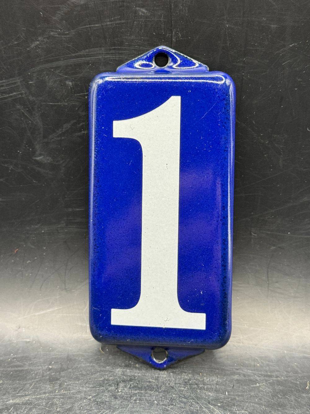 Trois petites plaques émaillées bleues et blanches avec les chiffres un (x2) et sept (7) – Décoration – Collection – 117 – 171 …