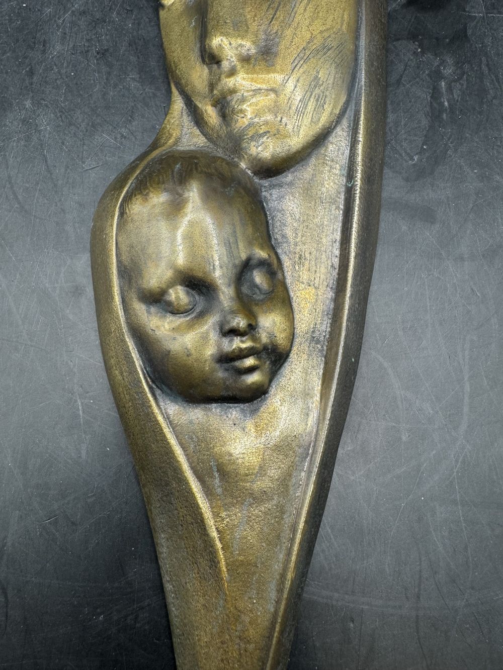 RARE Vierge à l’enfant en BRONZE, plaque religieuse chrétienne de communion datant de 1919 (voir étiquette)