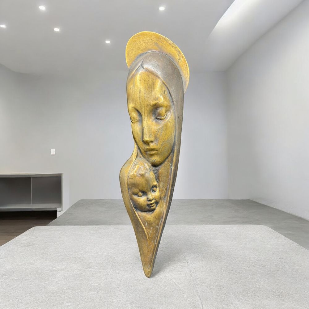 Vierge à l’enfant en Bronze, plaque religieuse chrétienne de communion datant de 1919 (voir étiquette) – Avec Accroche murale